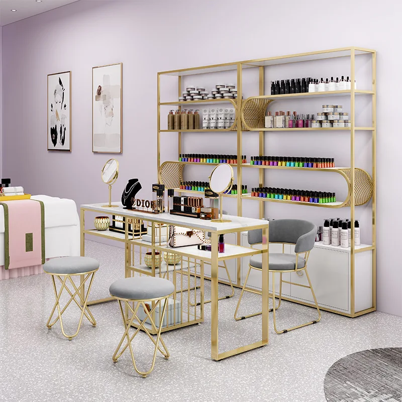 Nordic style modern design light luxury Nail Salon Manicure Table Nail Table And Chair With Gold Frame Customize Nail stool