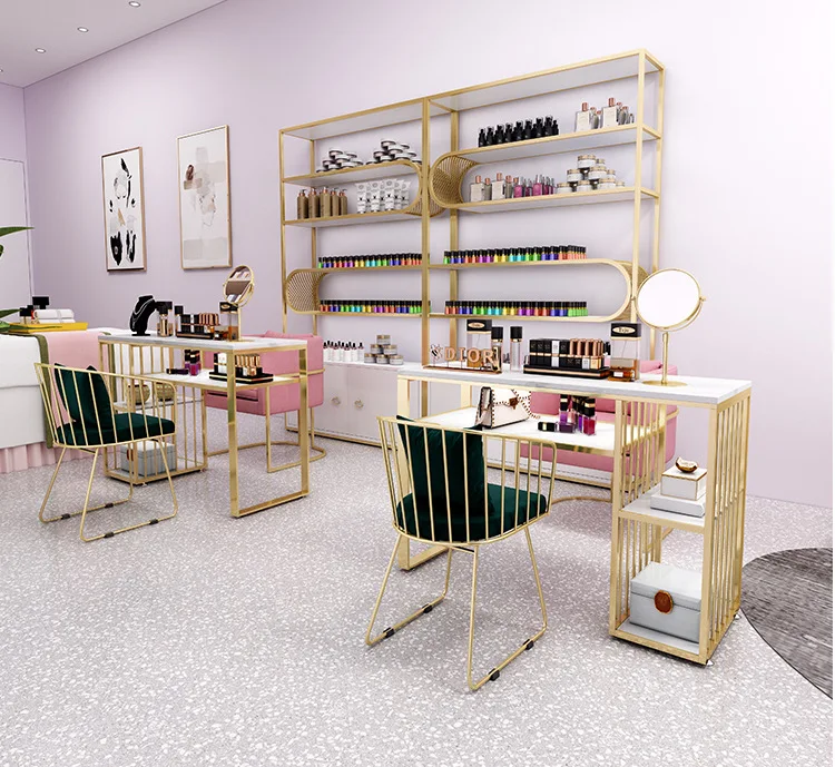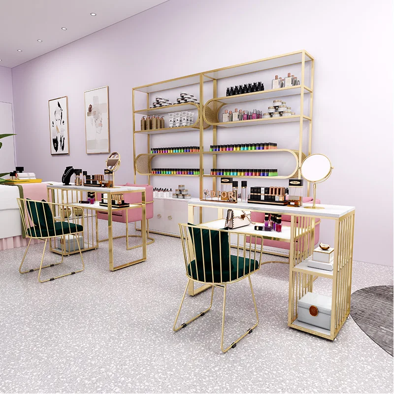 2024 Top Suppliers Nail Salon Manicure Table Nail Table And Chair With Gold Frame Customize Nail stool