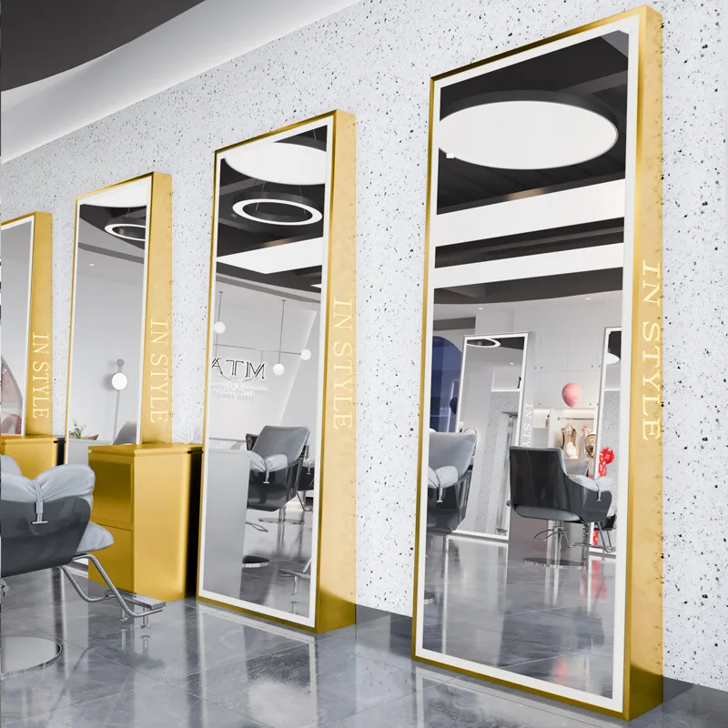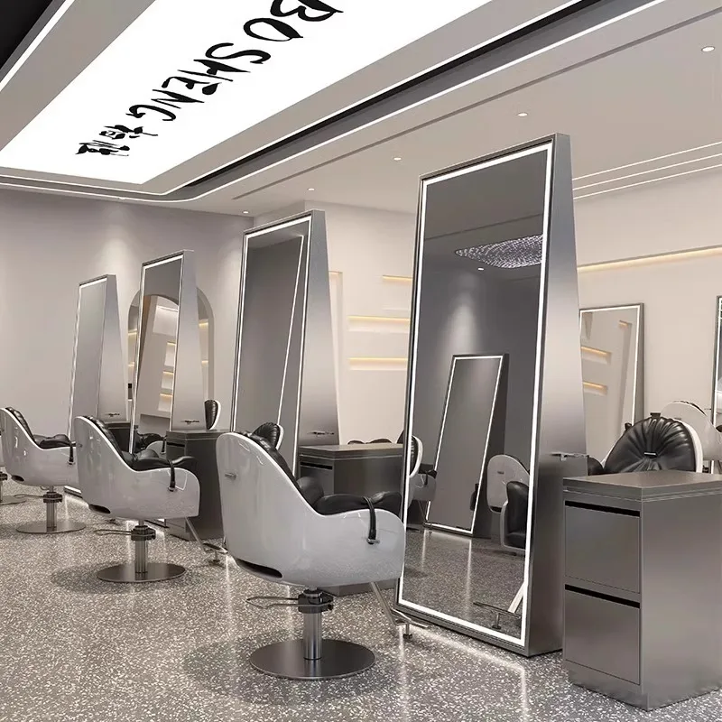 2024 Modern style light luxury design barbershop beauty shop mirror salon furniture set full-length hair mirror table