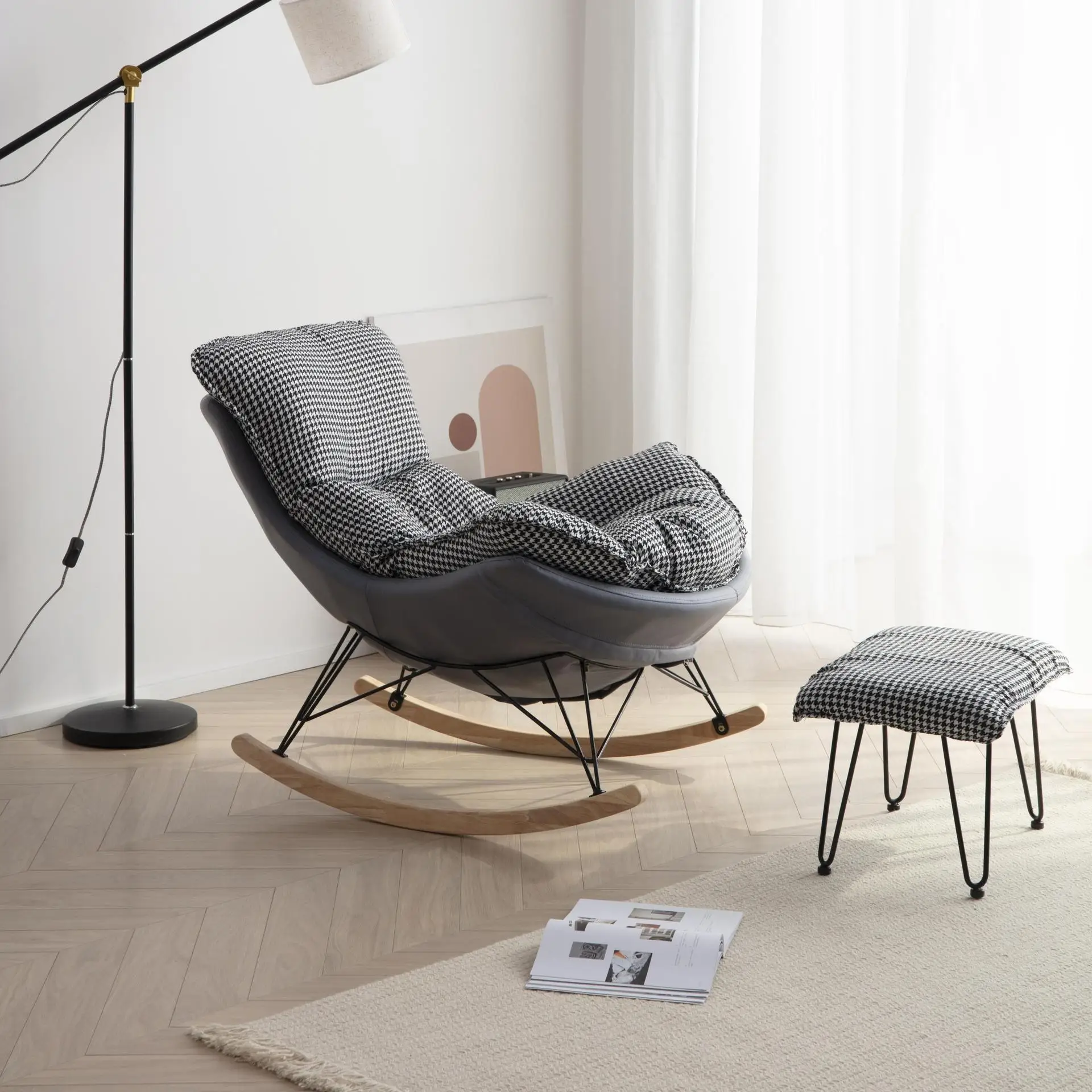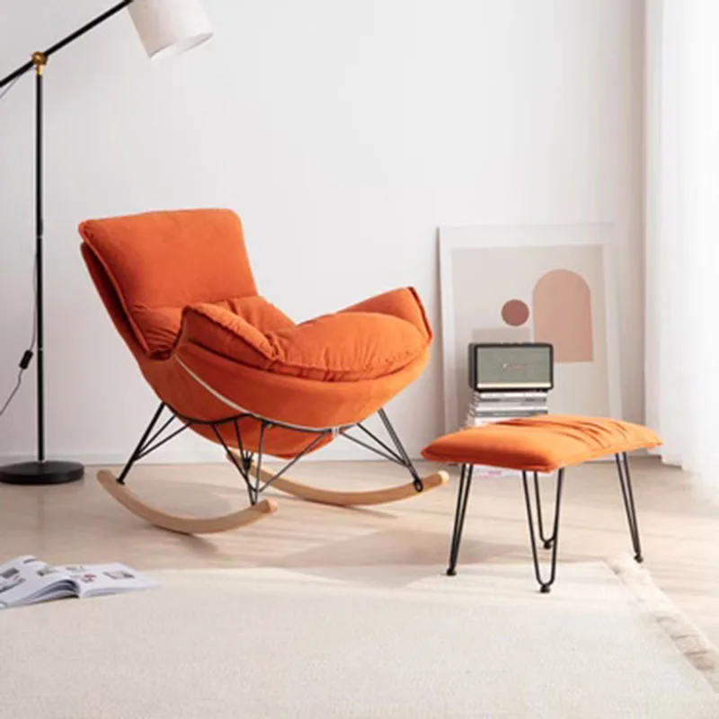 High quality supplier factory wholesale comfortable reclining fabric metal tube wooden under frame rocking chair side sofa