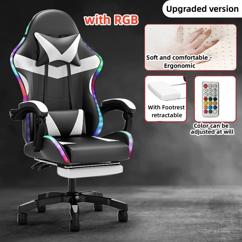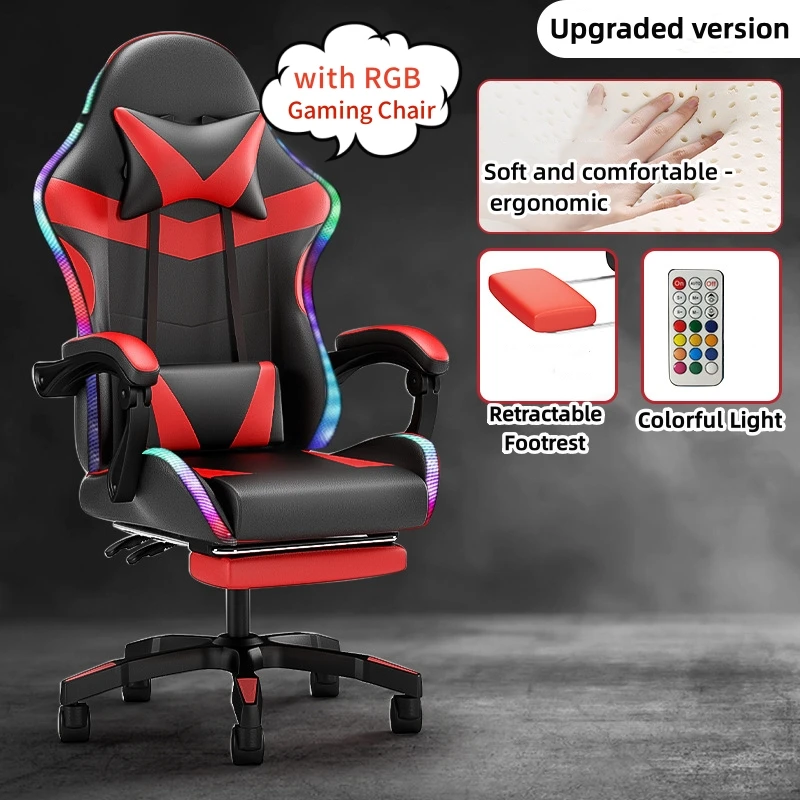 features. The chair is equipped with built-in RGB LED strips, which can be adjusted to different colors and lighting effects,
