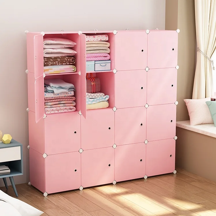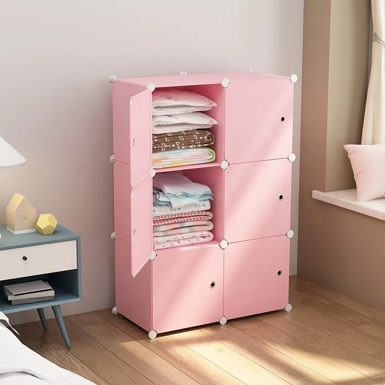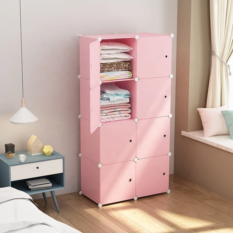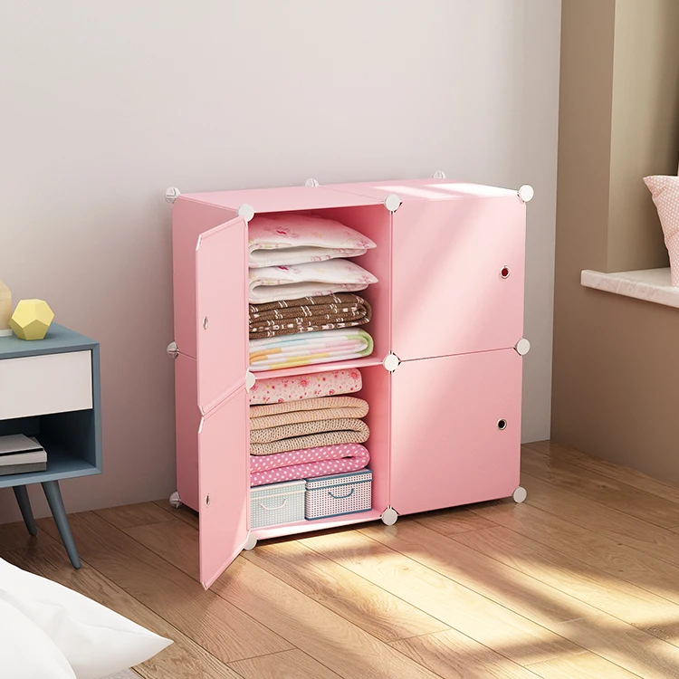 Pink Multi-Function PP Plastic Stackable Storage Cabinets Living Room Furniture