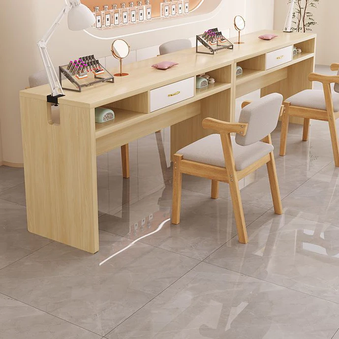Beat Selling Super Strong Load-Bearing Double Layer Classification Salon Furniture Original Wood Manicure Nail Table