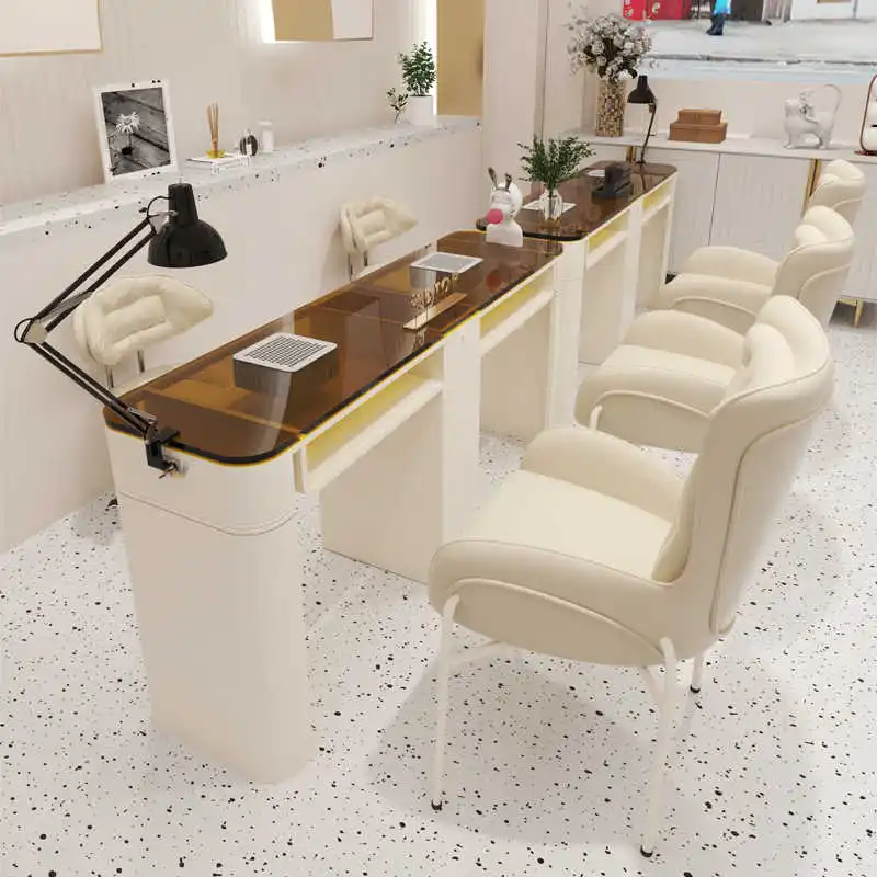 Wholesale Price Hair Salon Equipment Barbershop Black Luxury Tempered Glass Nail Table Nail Salon Table