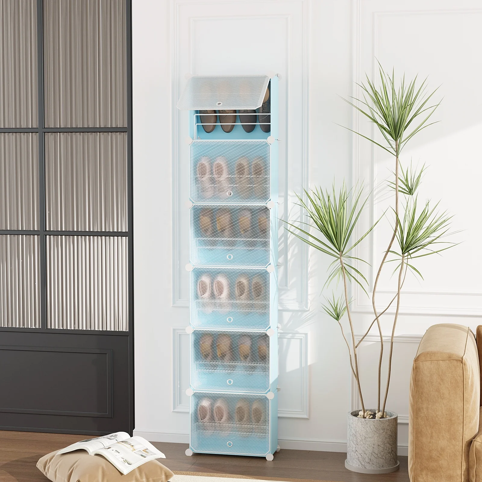 Saving Room Standing Shoe Storage Cabinet Large Capacity Free Assembly Shoe Rack