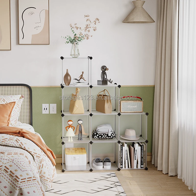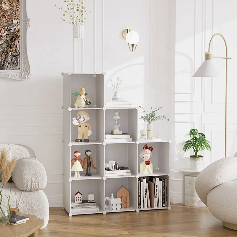 9-Cube White Closet Storage Shelves DIY Plastic Square Organizer Storage Cube Cabinet