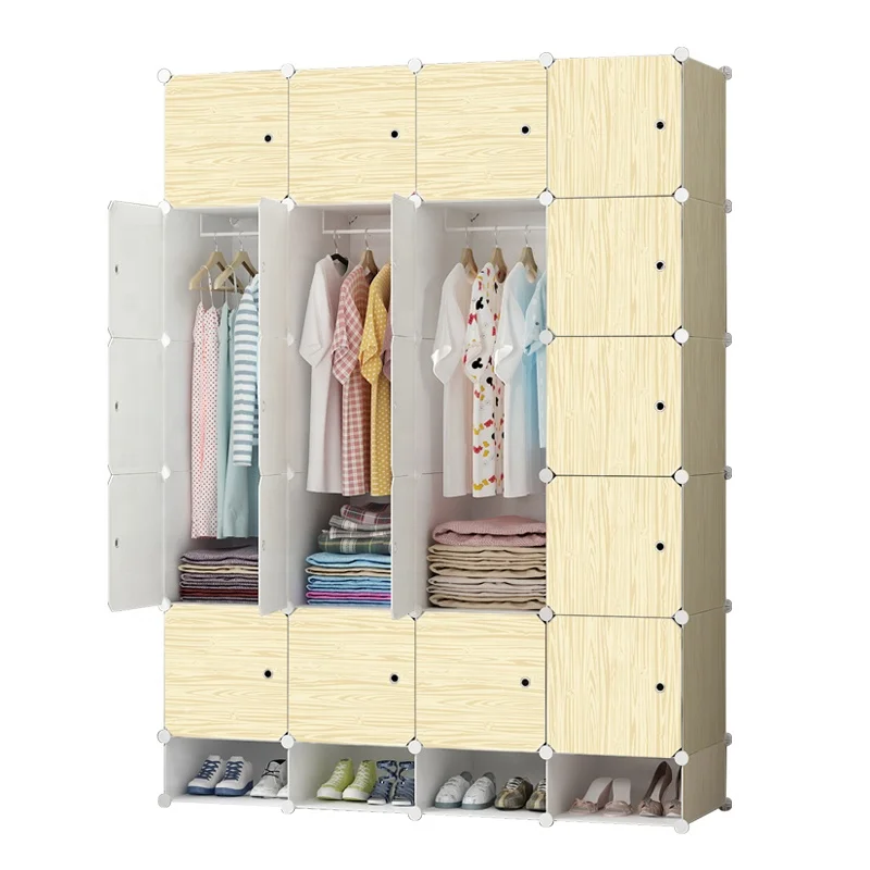 Wooden Grain Color Simple Foldable Storage Cabinets Living Room Plastic Collapsible Wardrobe
