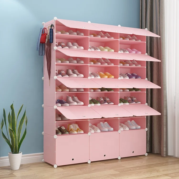Hot Selling Blue Color Plastic Shoe Rack Storage 30 Cube Large Capacity Shoe Cabinet