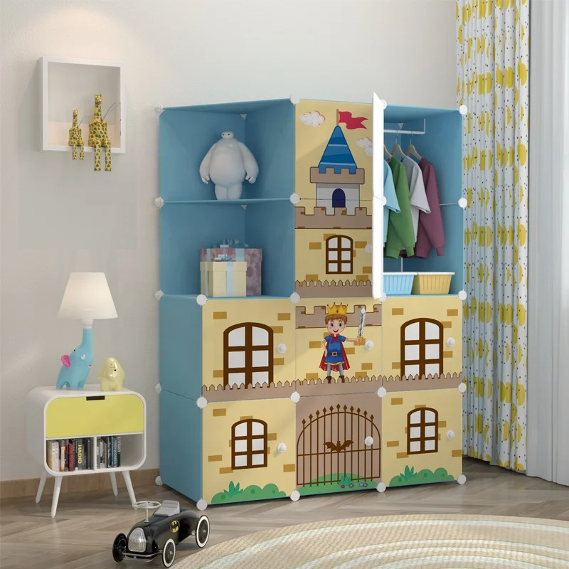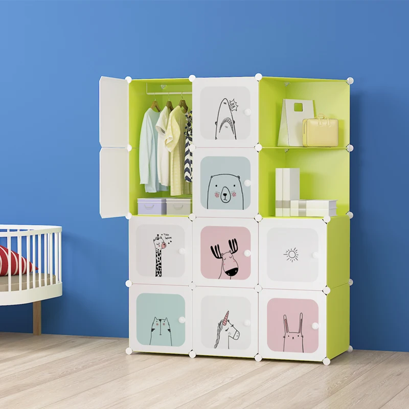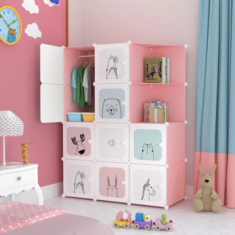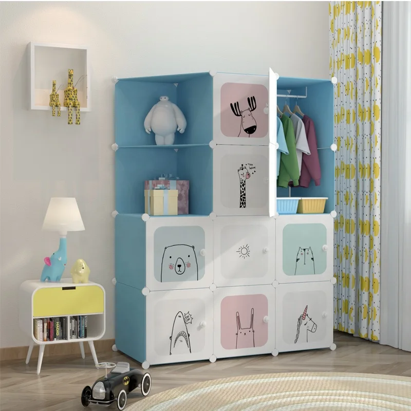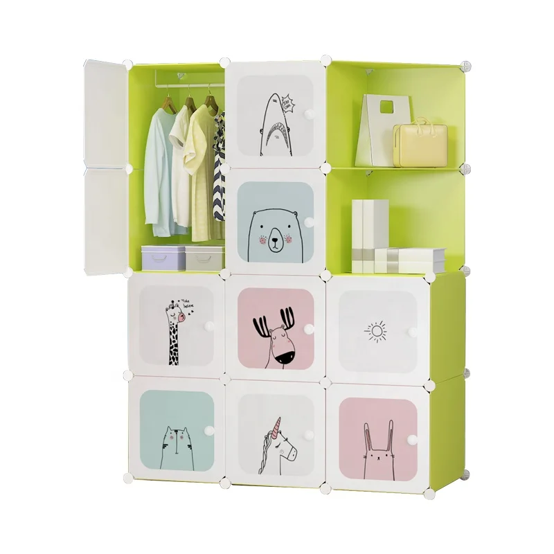 Wholesale easy assembly foldable folding cupboard home decoration clothes plastic kids cabinet wardrobe