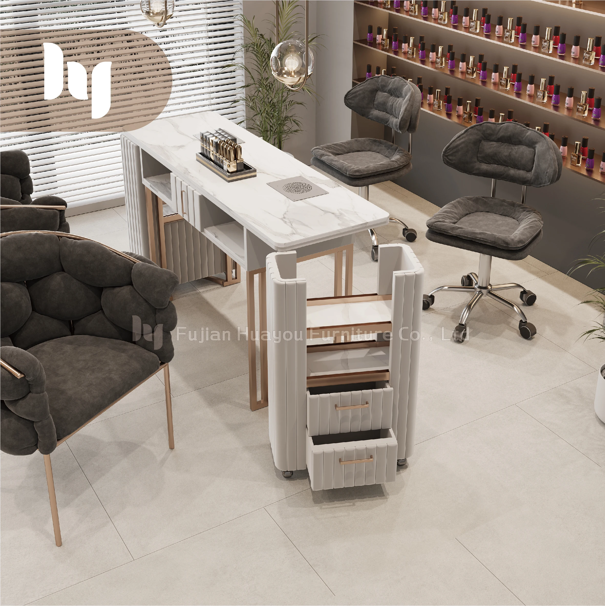 Modern Marble Manicure Table Furniture Luxury Desk Nail Bar Table With Storage