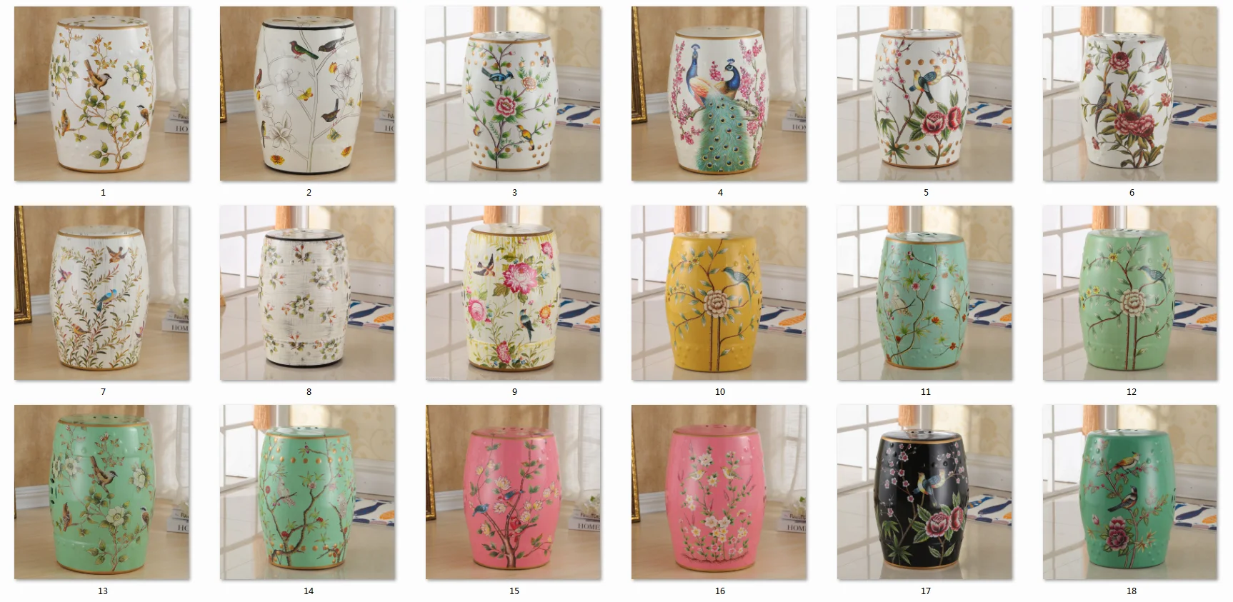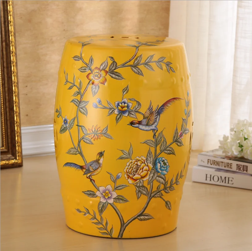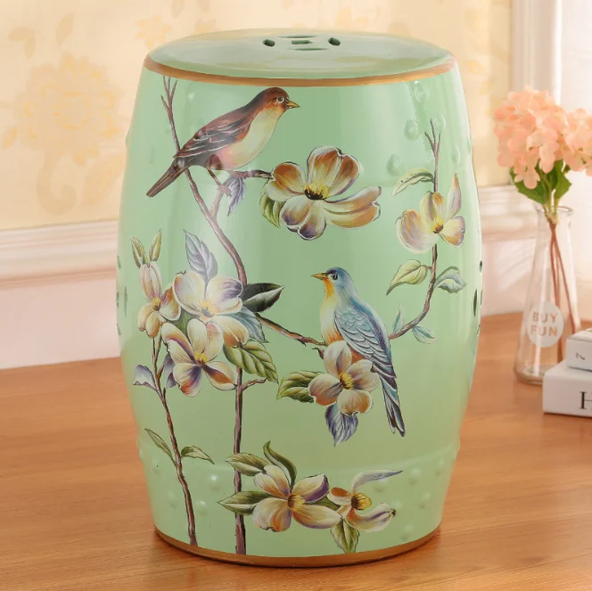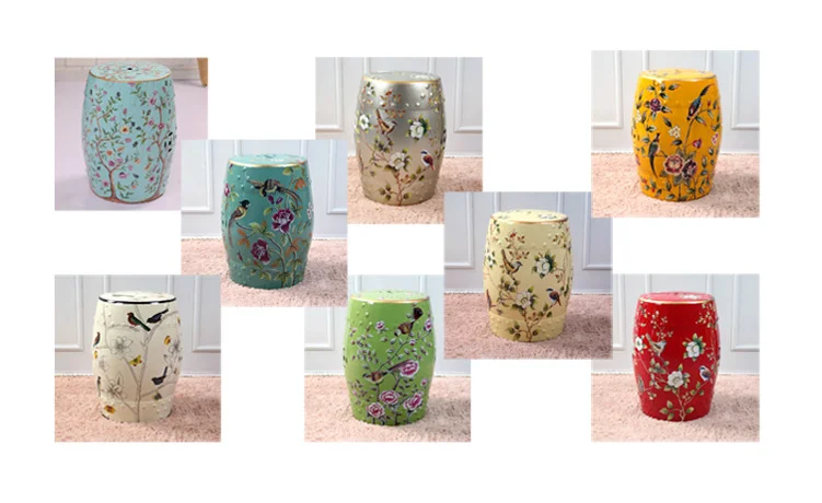 Traditional Chinese Design Floral Paint Porcelain Garden Home Decorative Drum Ceramic Stool Hand Painted Antique Outdoor Living