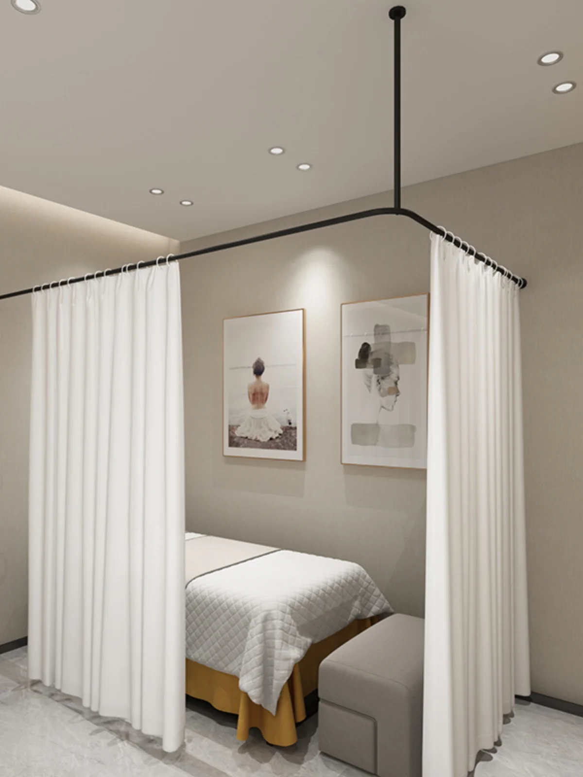 Wholesale L-shaped Beauty Salon Cubicle Privacy Protection Sound Insulation Solid Light Shielding Engineering Curtain