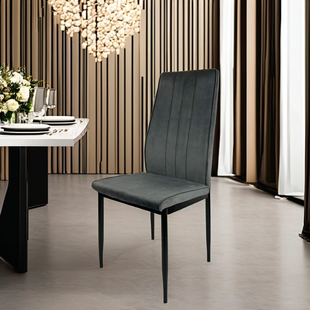 Cheap High Back Upholstered Dining Chair Hotel Restaurant Dining Chair PU/Velvet Banquet Kitchen Chair High Back Metal Leg