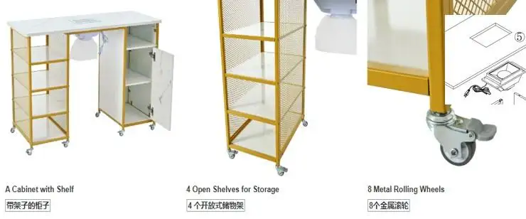 Factory Direct Price Beauty Salon Furniture Wood Metal Beauty Nail Tables Dresser Available Manicure Table