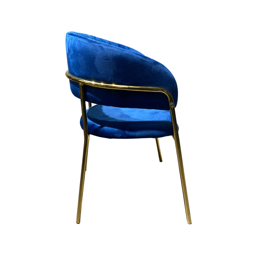 Modern Nordic Upholstered Dining Chair Kitchen Dining Blue Velvet Velour Seat Glod Metal Tube Frame Arm Chair Hot Sale