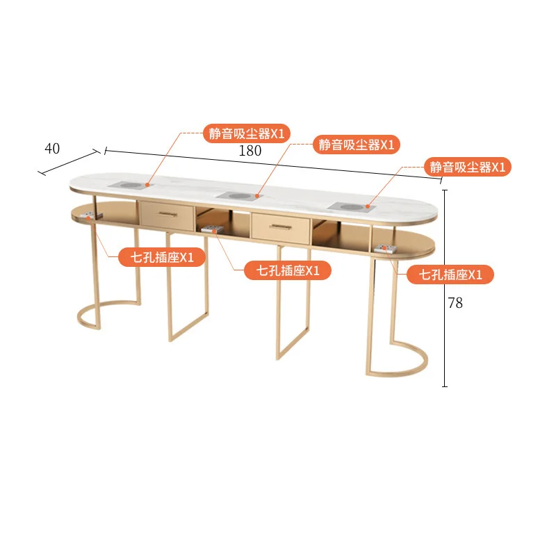 Professional Customized Nail Tech Table Marble Panel Metal Table Legs Manicure Table For Gel Nail