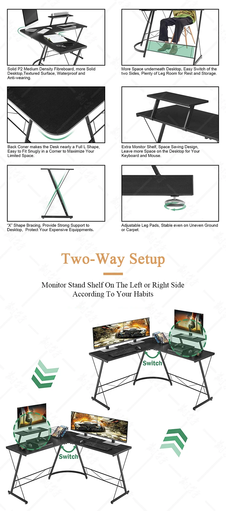 Name | L-shaped Computer Gaming Table | Payment | T/T (30% payment in advance , 70% balance before shipping), L/C |
