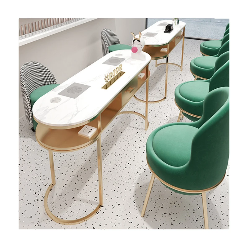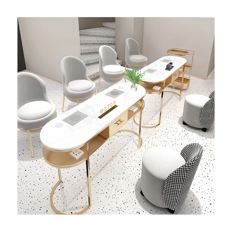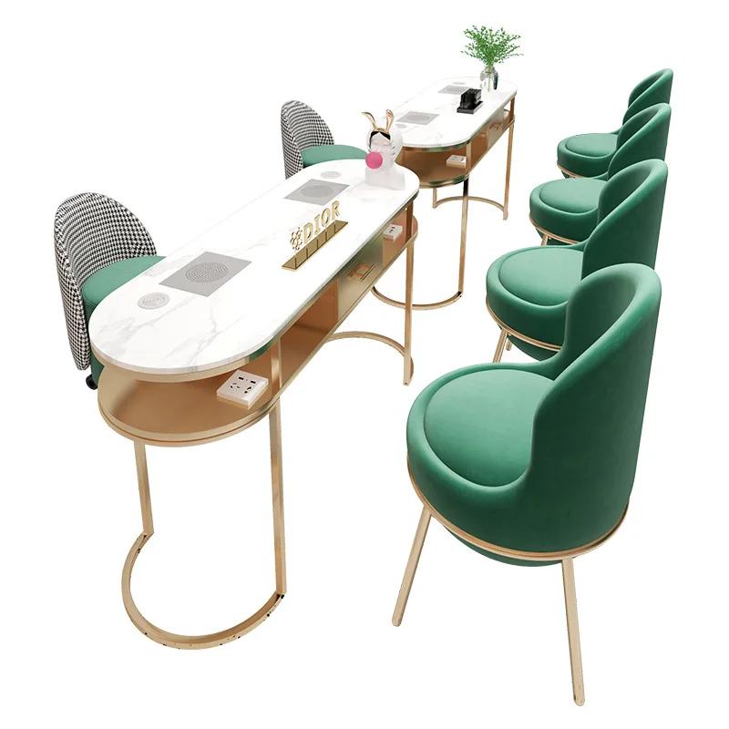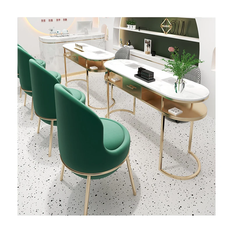 Luxury Simple Nordic Net White Marble Set Nail Shop Single And Double Red Grey Manicure Table And Chair For Sale