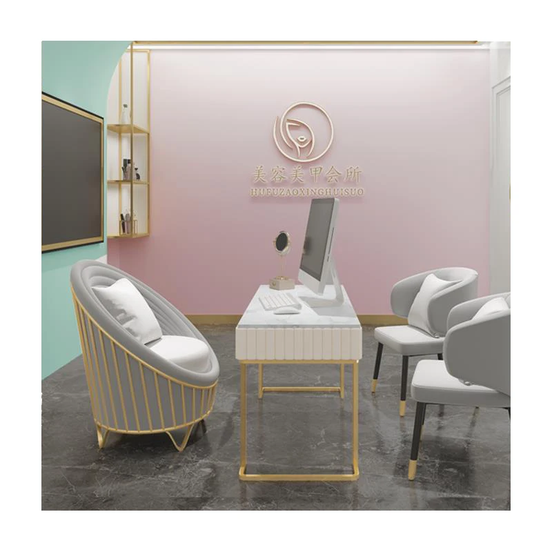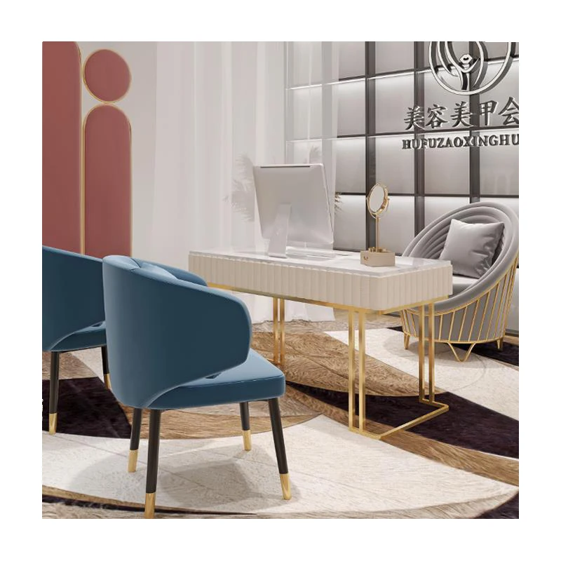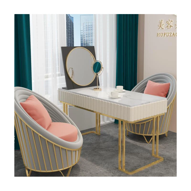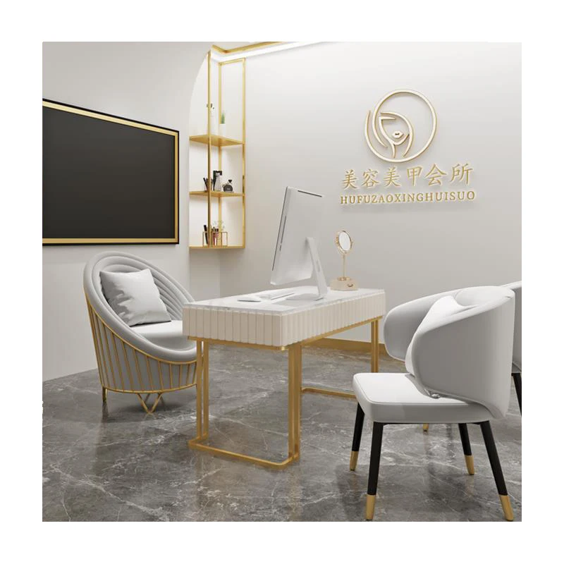 High Quality Professional Customized Nordic Cream Style Glass Manicure Table Marble Panel Metal Table Legs Nail Tables
