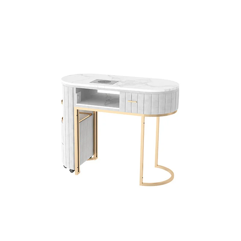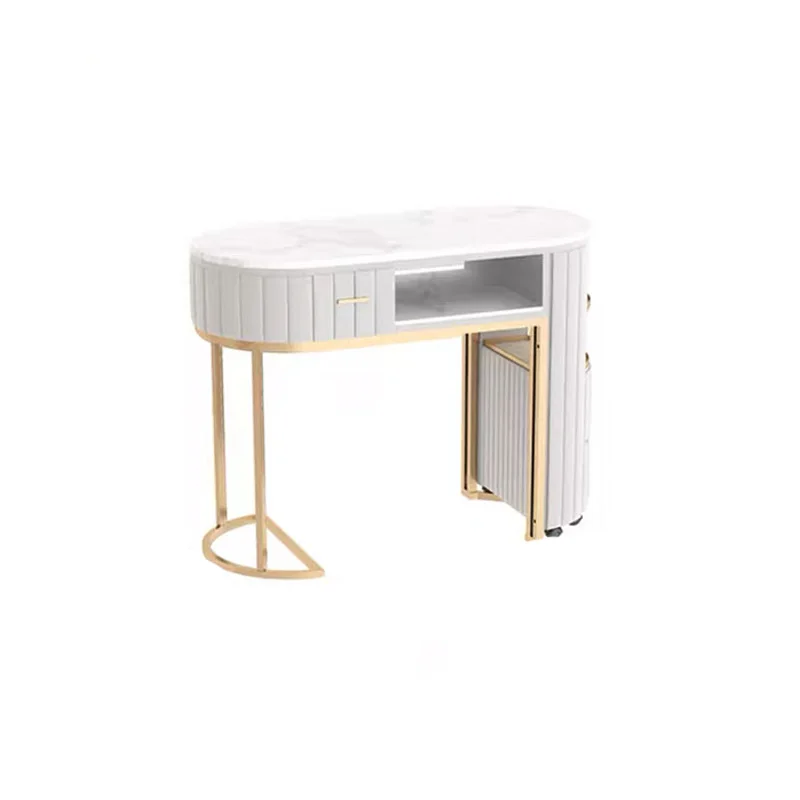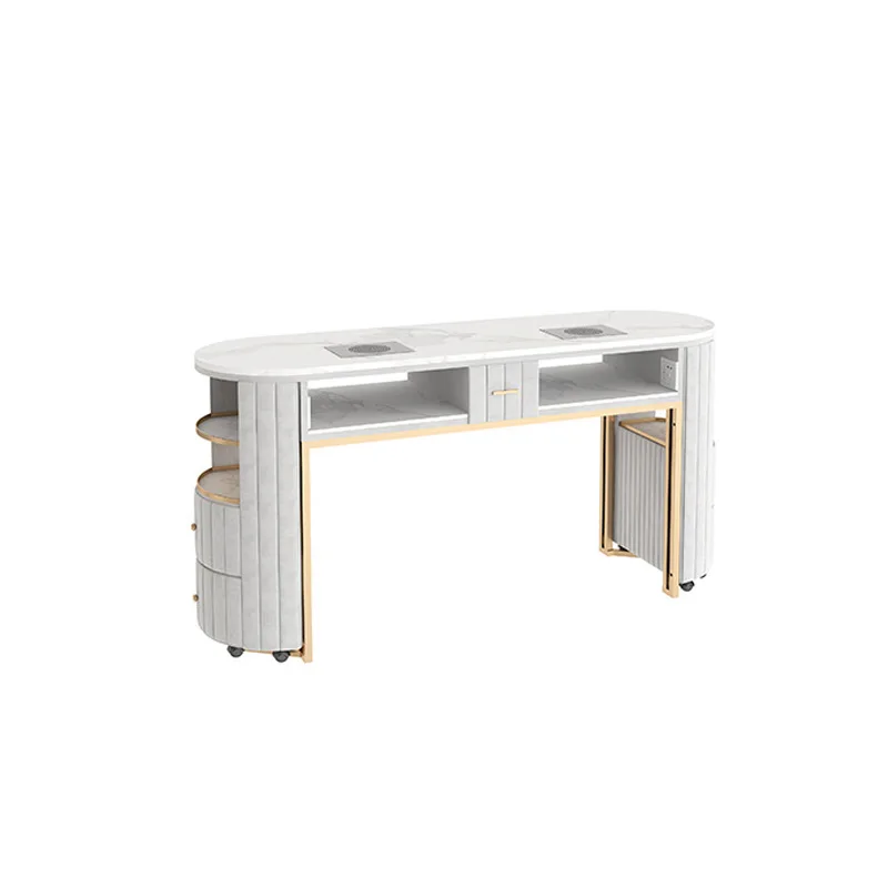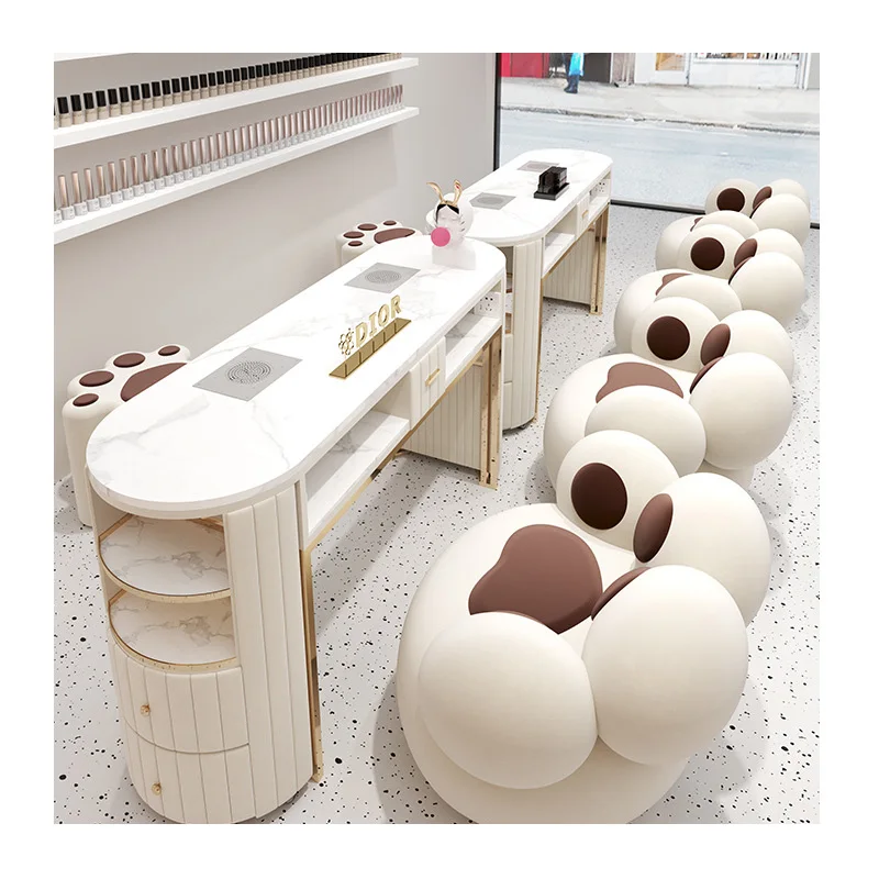 Nordic Cream Style Light Luxury Manicure Table for Gel Nail Double Layer Marble Panel Manicure Table and Chair Set