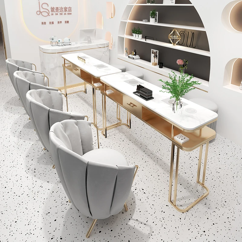 Modern Nail Salon Light Luxury Chairs and Double-layer Nail Art High-quality Nail Art Equipment Metal Aluminum Workshop