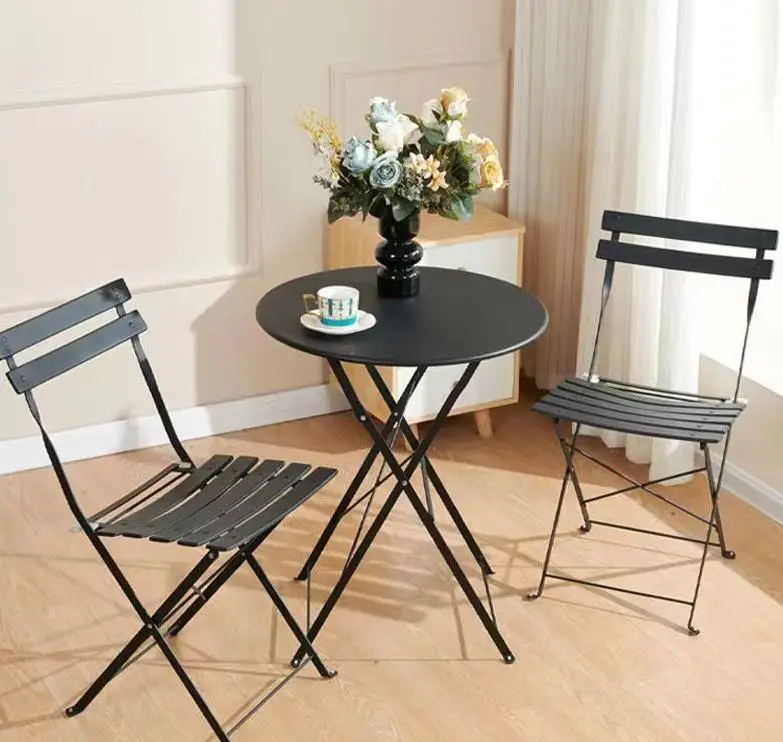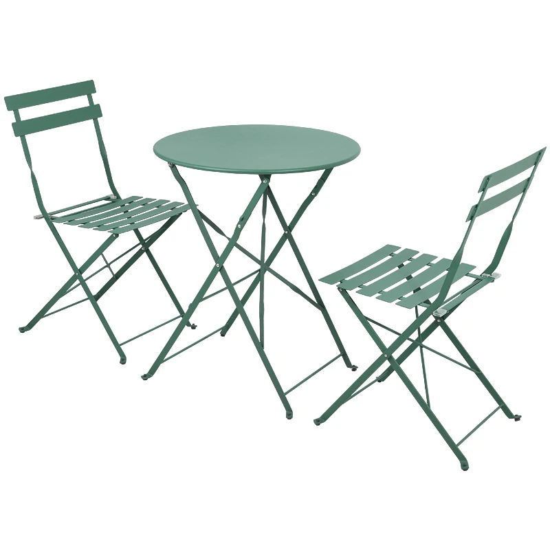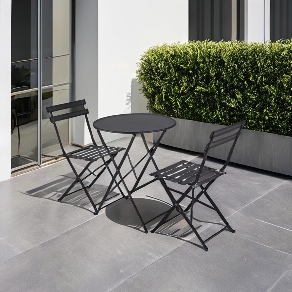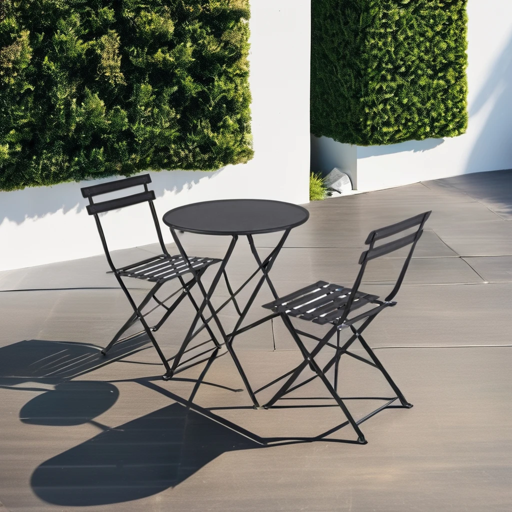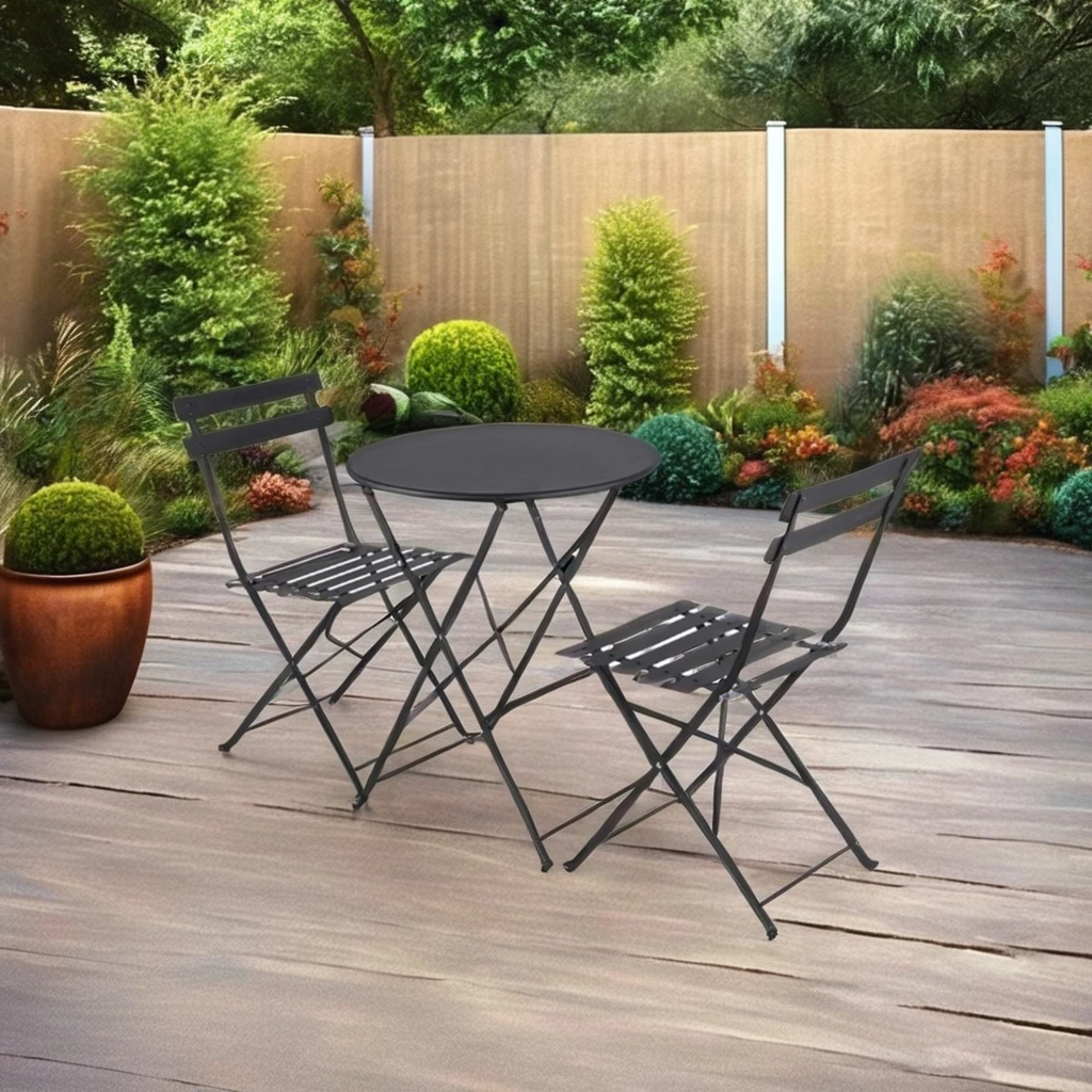 of sturdy material that can withstand the elements, while the chair provides a comfortable seating option. Easily fold them up