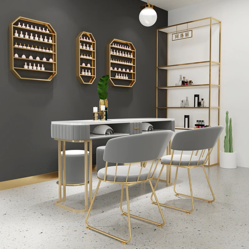Modern Pink Beauty Salon Single Double Manicure Table And Chair Set Nail Station Furniture