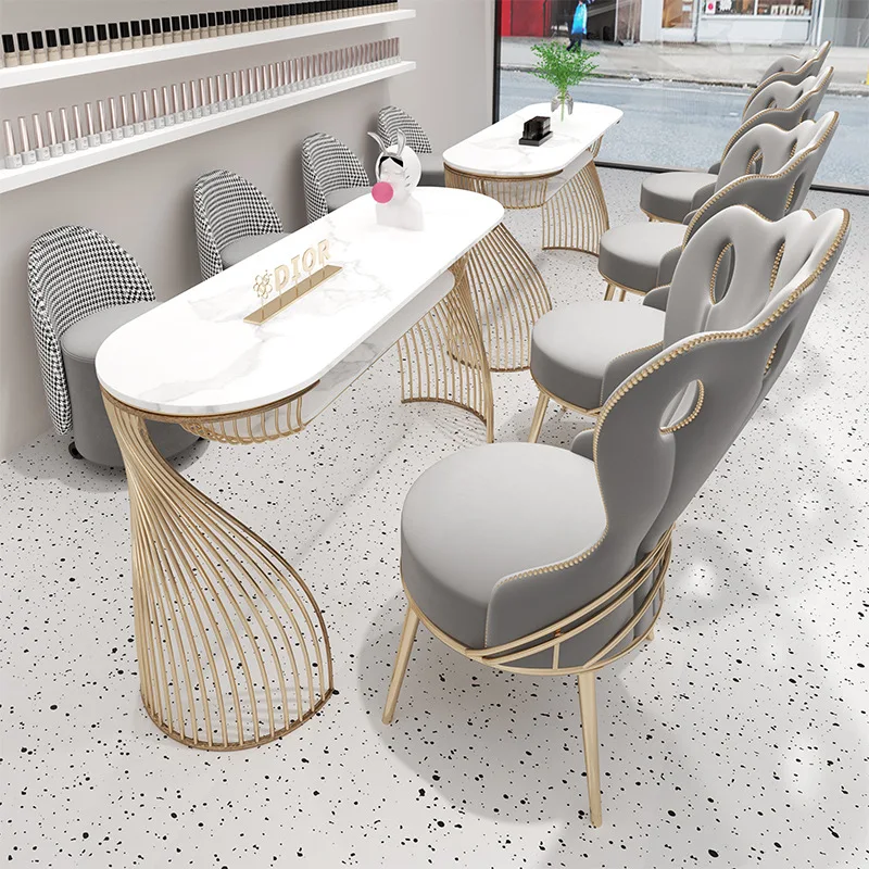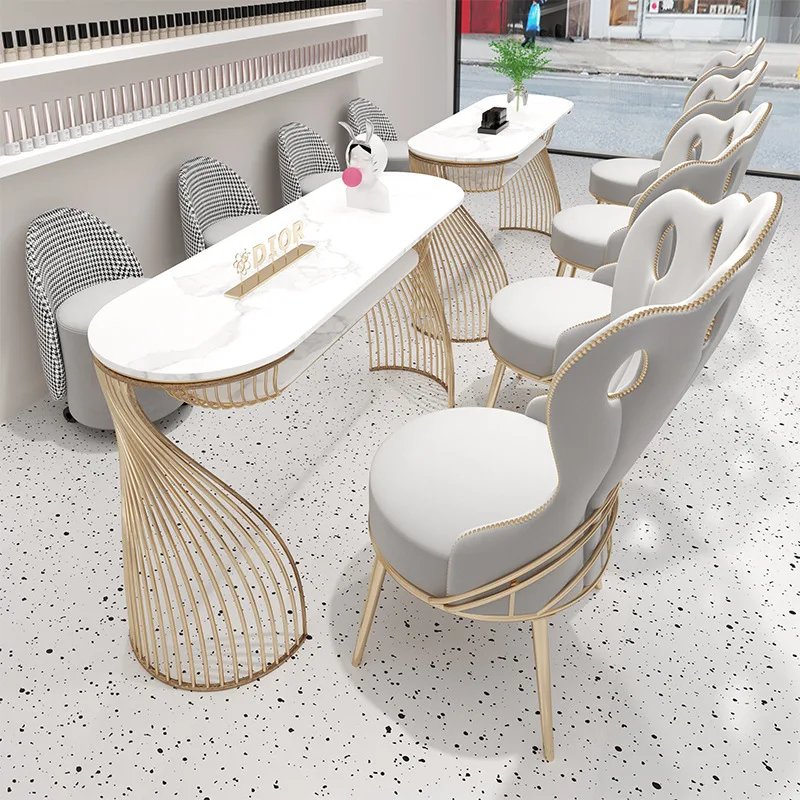 Nordic Rock Plate Light Luxury Popular Nail Table And Chair Set Iron Art Single And Double Nail Salon Manicure Table