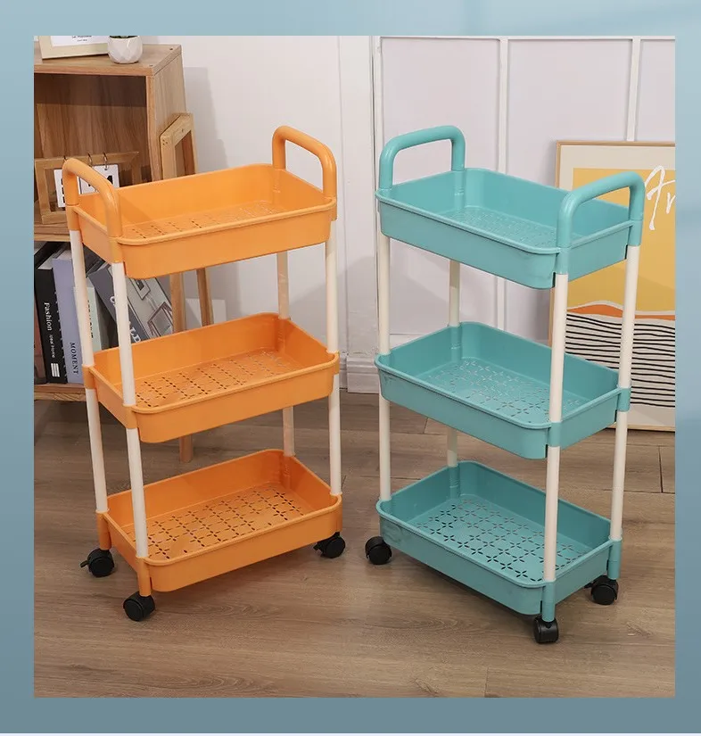 Low Price 3-Tier Mobile Vegetable Storage Rolling Cart with Wheels Space-saving Household Organizer Trolley Cart