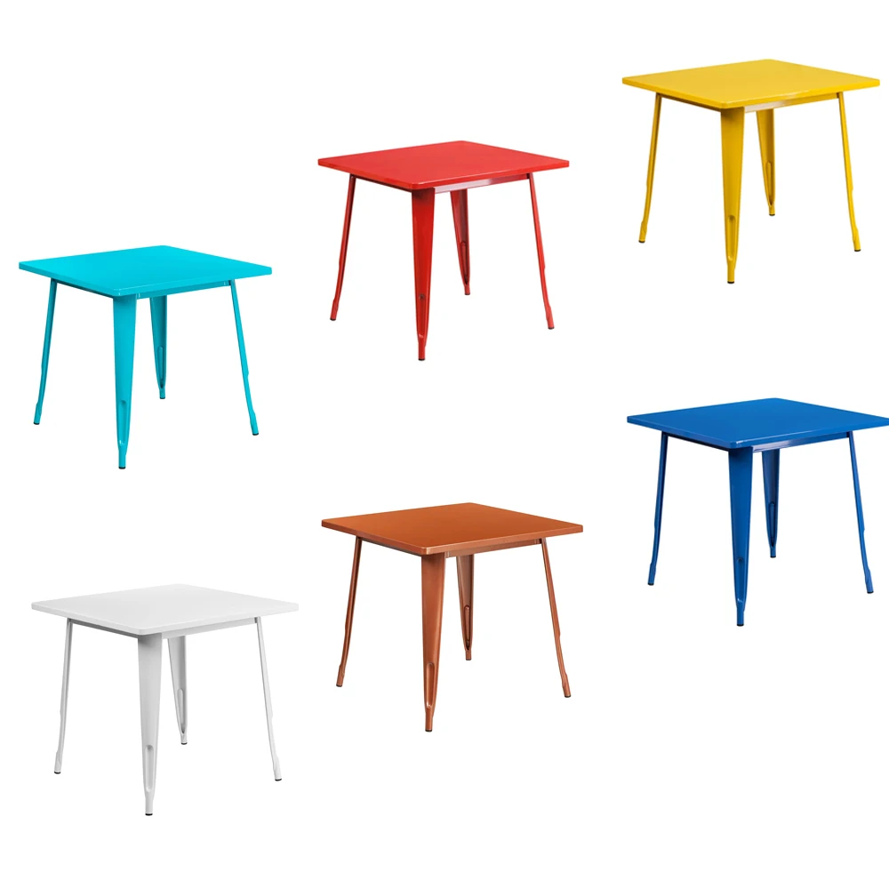 Space Saving Outdoor Fast Food Restaurant 4 Person Metal Dining Room Furniture Metal Dining Table