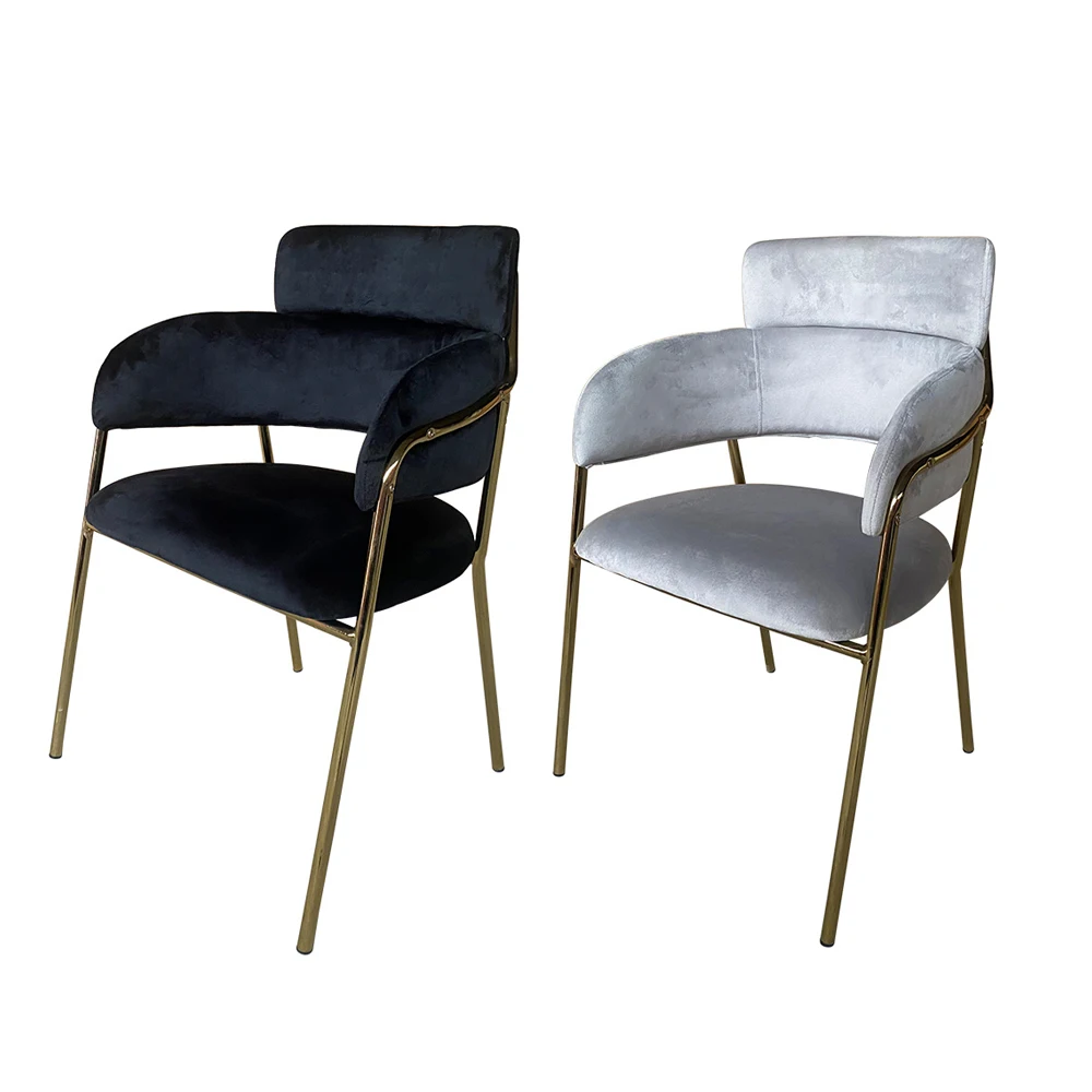 Factory Custom Cafe Metal Dine Armchair Restaurant Chair Modern Dining Furniture Velvet Fabric Dining Chairs