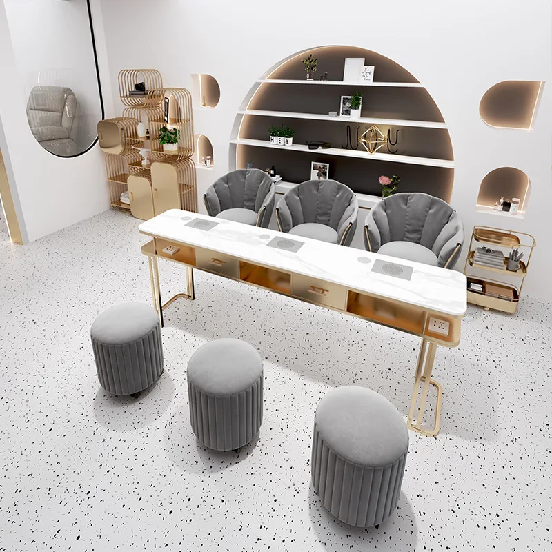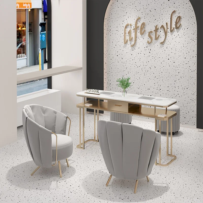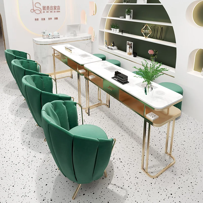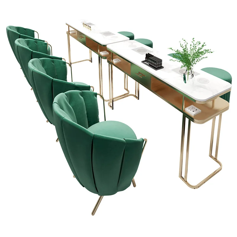 Light Luxury Custom Beauty Salon Dedicated Manicure Table And Chair Set With Metal Legs Double Manicure Table