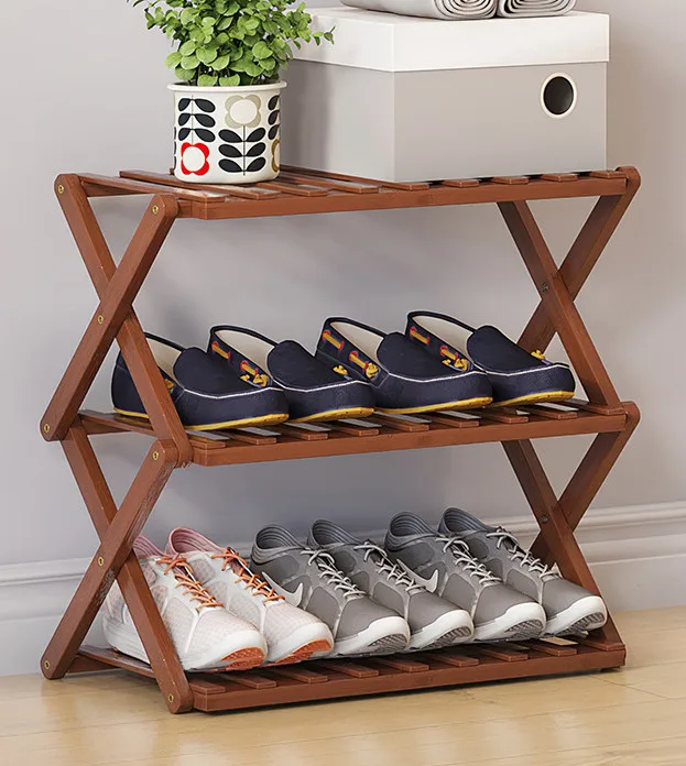 Morden Z Shaped bamboo 3 tire Furniture Storage stand foldable wooden Shoe Racks Organizer Cabinet for home