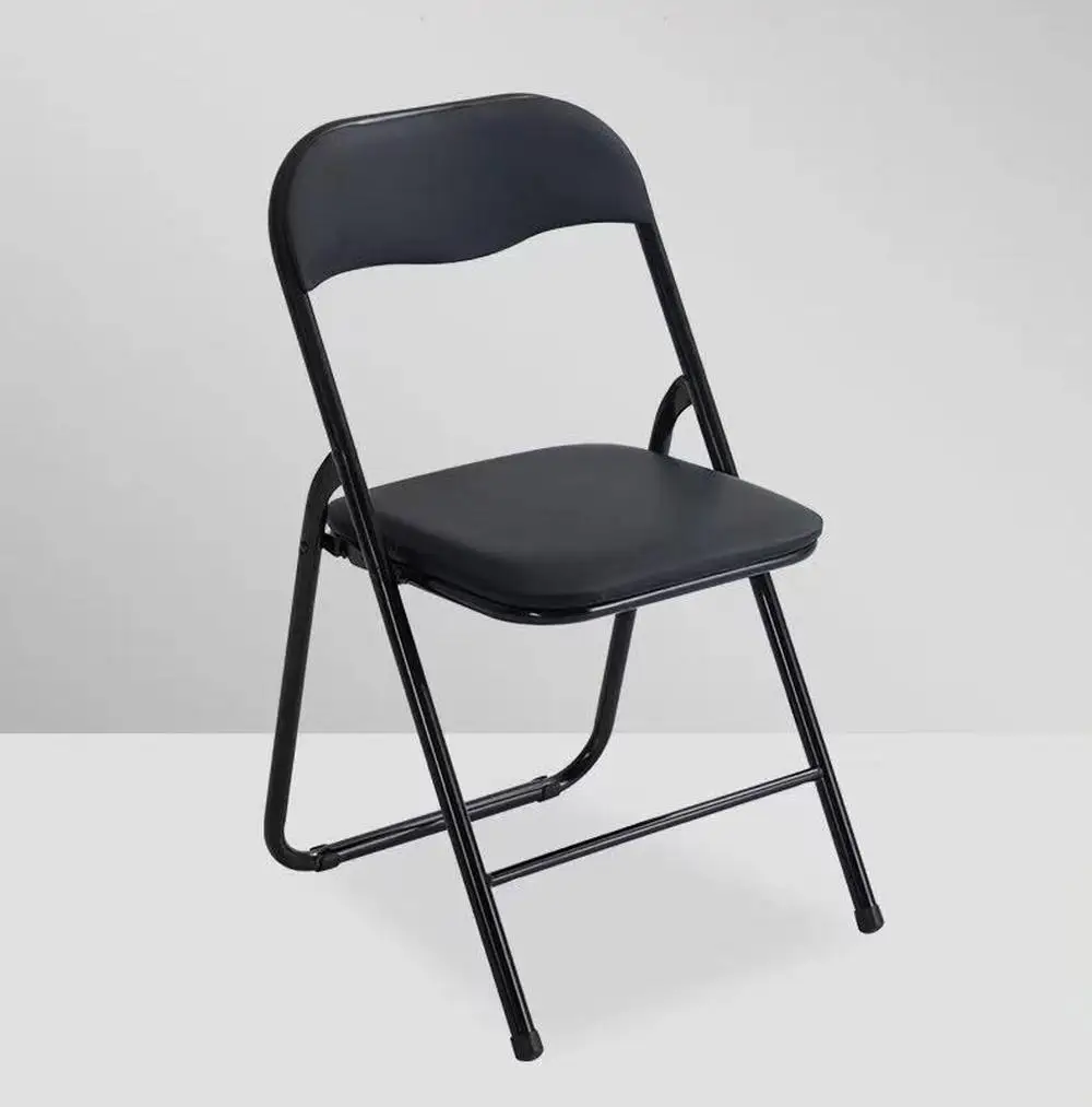 Cheap Foldable Stackable Chair Garden Party Meeting Wedding Events Soft PU Padded Seats Black Metal Folding Chairs