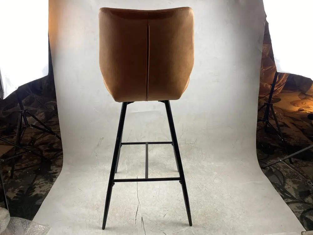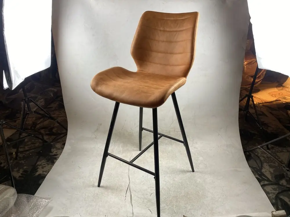 Nordic Classic Bar Chairs Kitchen Fabric Wood Seat Sleek Modern Bar Stool Chairs Boucle Modern PU Leather Armchair