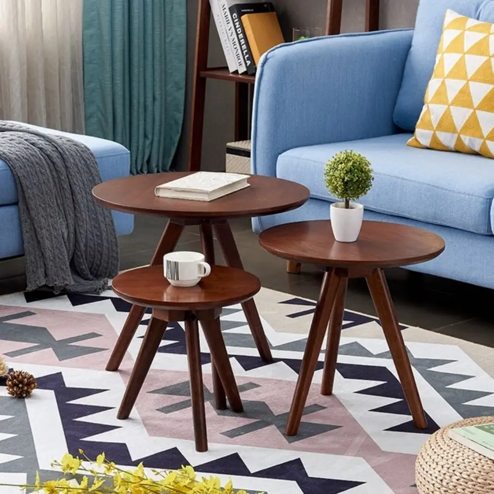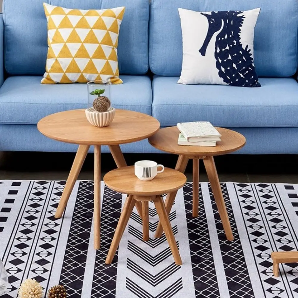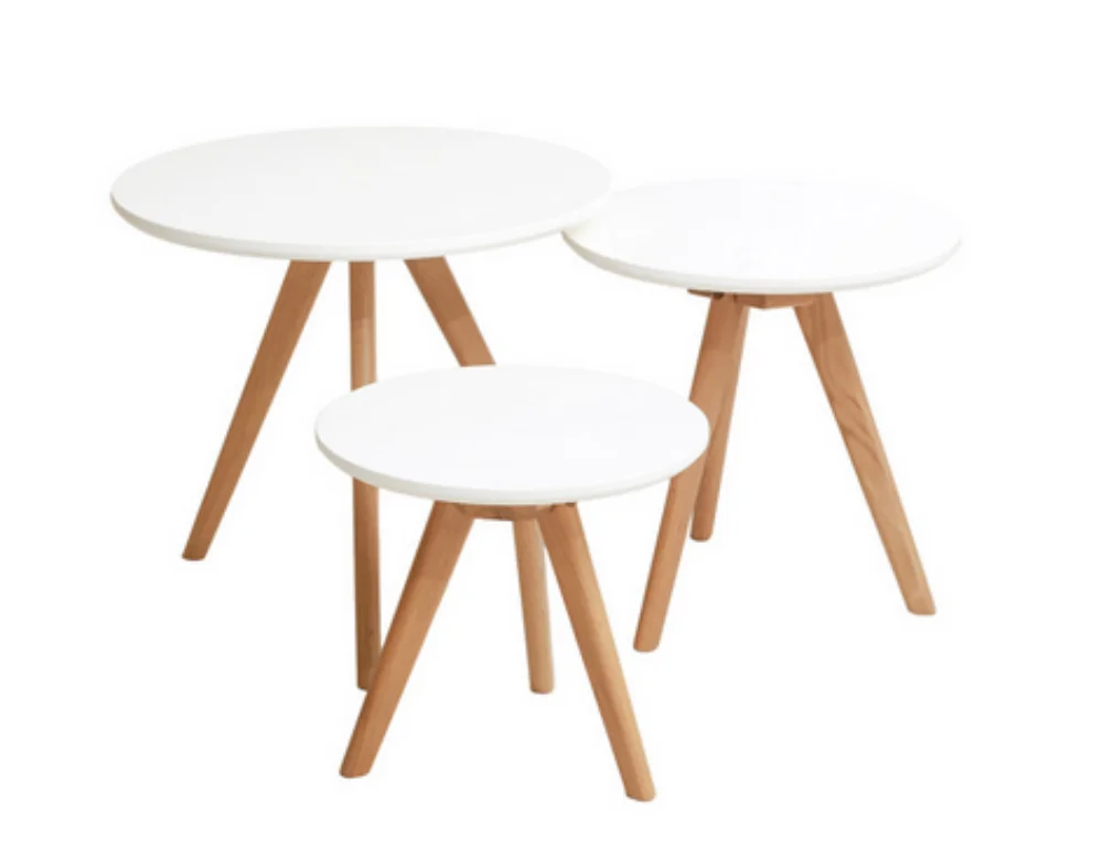 Simple Design White Triangle MDF Wood Top Bamboo Leg Living Room Sofa Side End Tea Nesting Coffee End Table Set