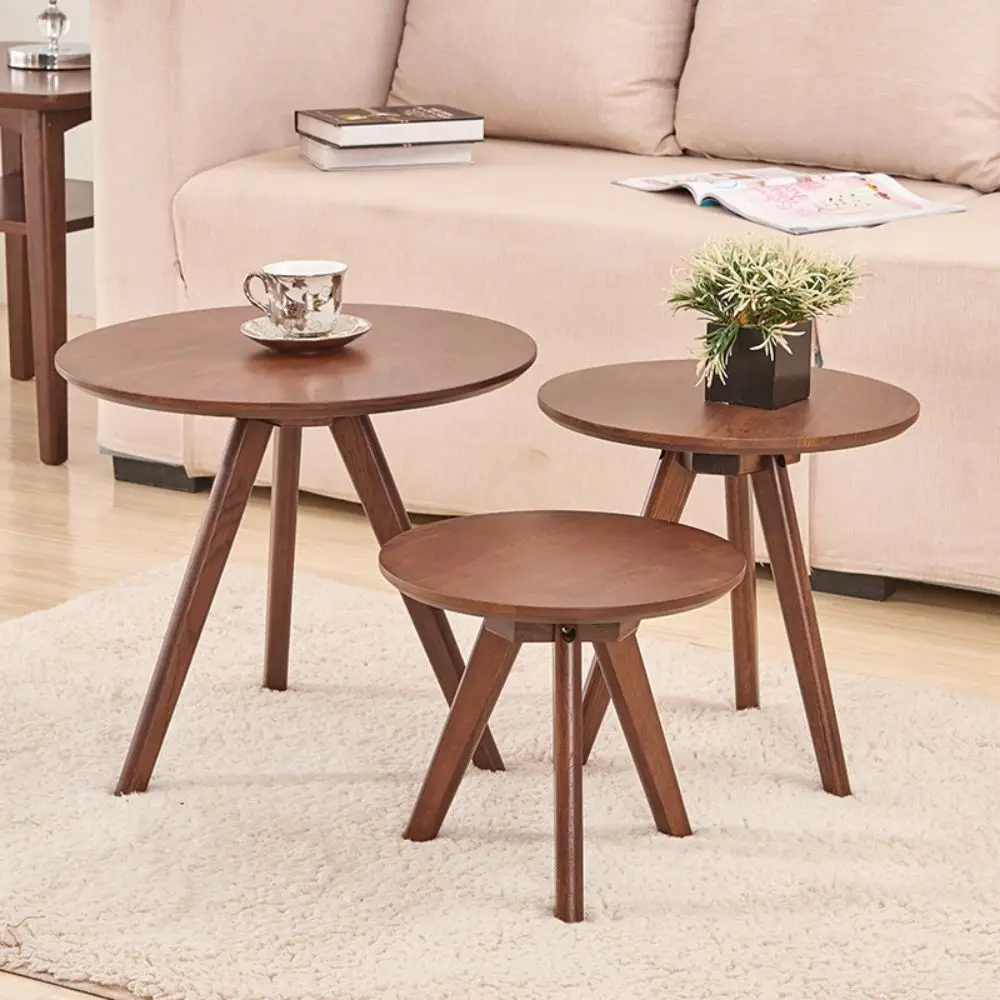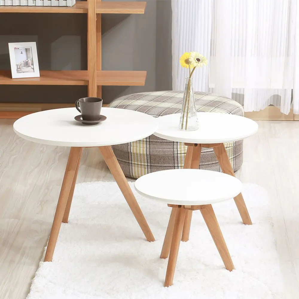 Modern White Triangle MDF Wood Top Bamboo Leg Living Room Sofa Side End Tea Nesting Coffee End Table Sets
