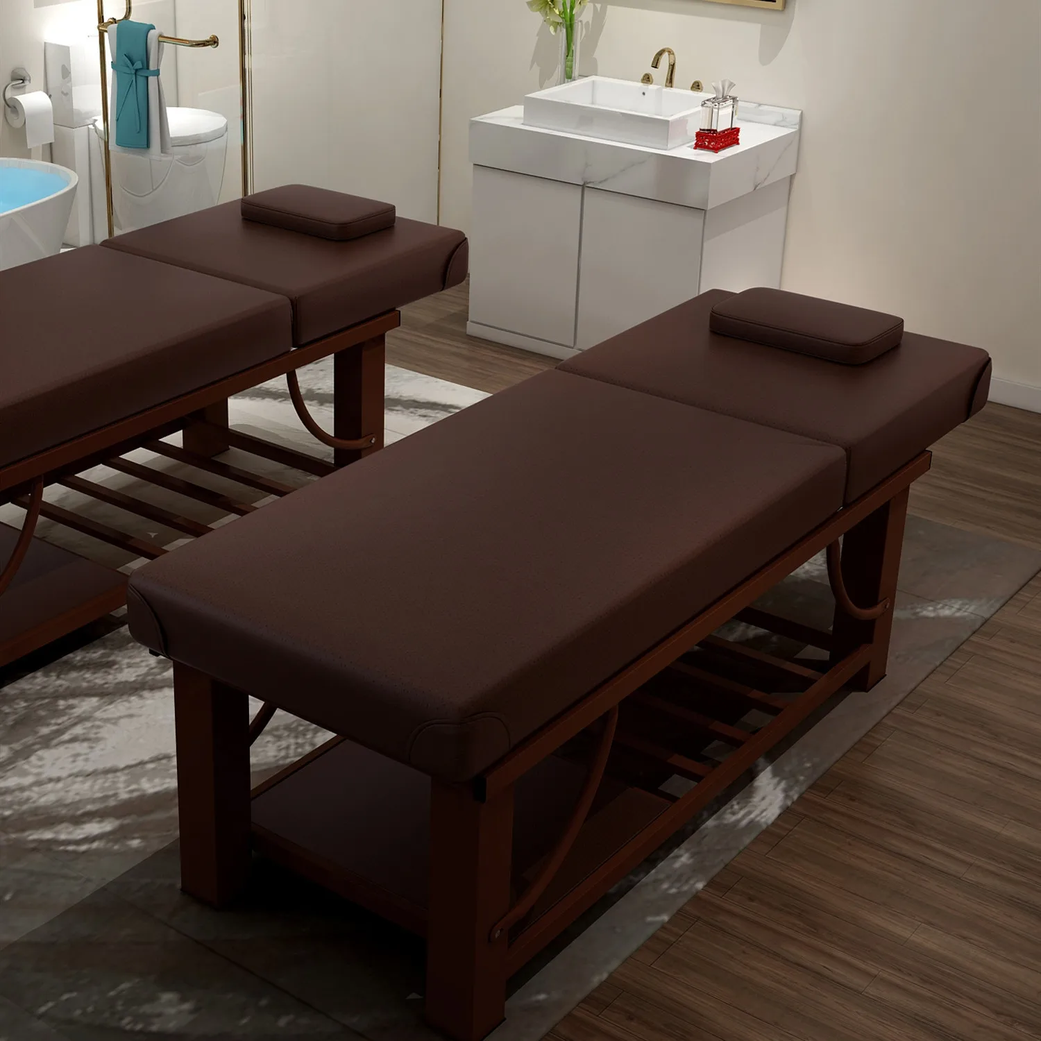 1. No Need Assembled 2. This massage table leg is with solid beech wood, massage filter is foam, and surface is cover with PU leather 3. The height can be adjustable from 58cm to 78cm 4. The top is thick and padded, and very comfortable to lay on 5. Weight capacity: 450lbs 6. This massage table package includes a standard massage table accessory , removable/integrated face portable, and with free carrying bag 7. This massage bed is ideal for professional therapists, therapu stundetns and home ursers as well | ||