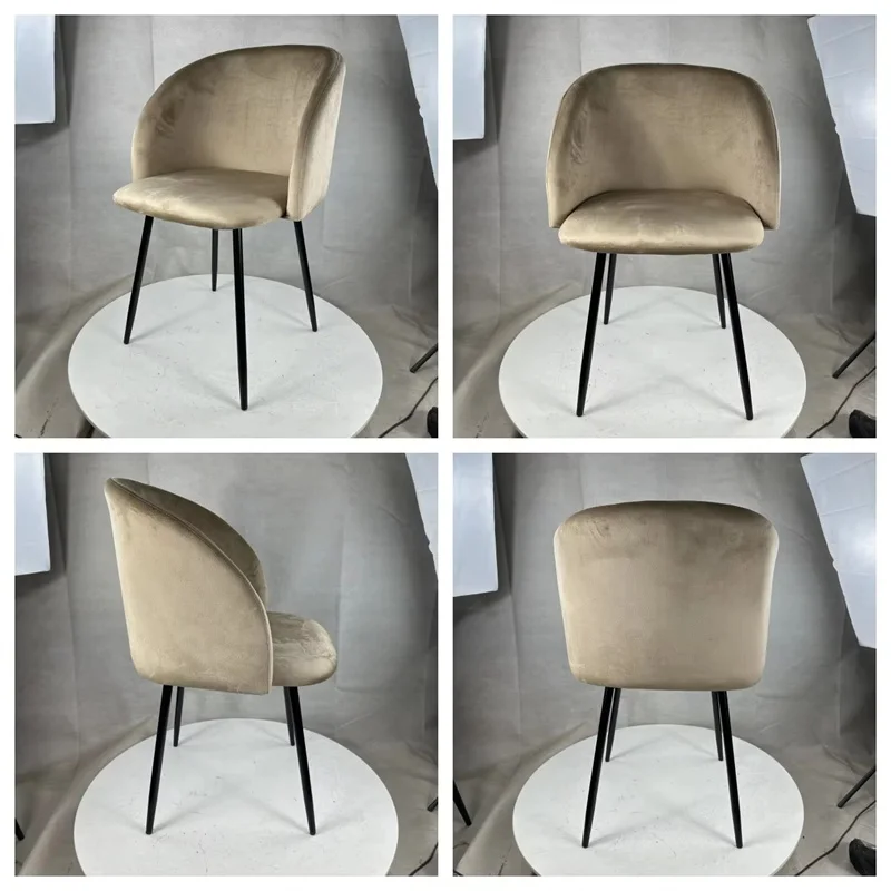 Hot Selling Nordic Dining Chairs Velvet Upholstered Metal Legs Sofa Chair Restaurant Dining Living Room Chairs