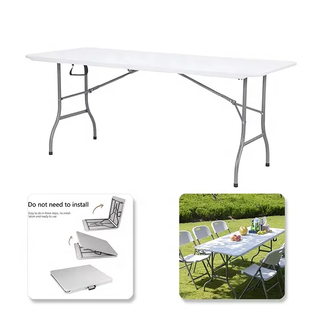 Plastic Top Metal Feet Folding Tables Trestle Table Outdoor Garden Party Events Wedding Patio Long 6 ft Plastic Folding Tables