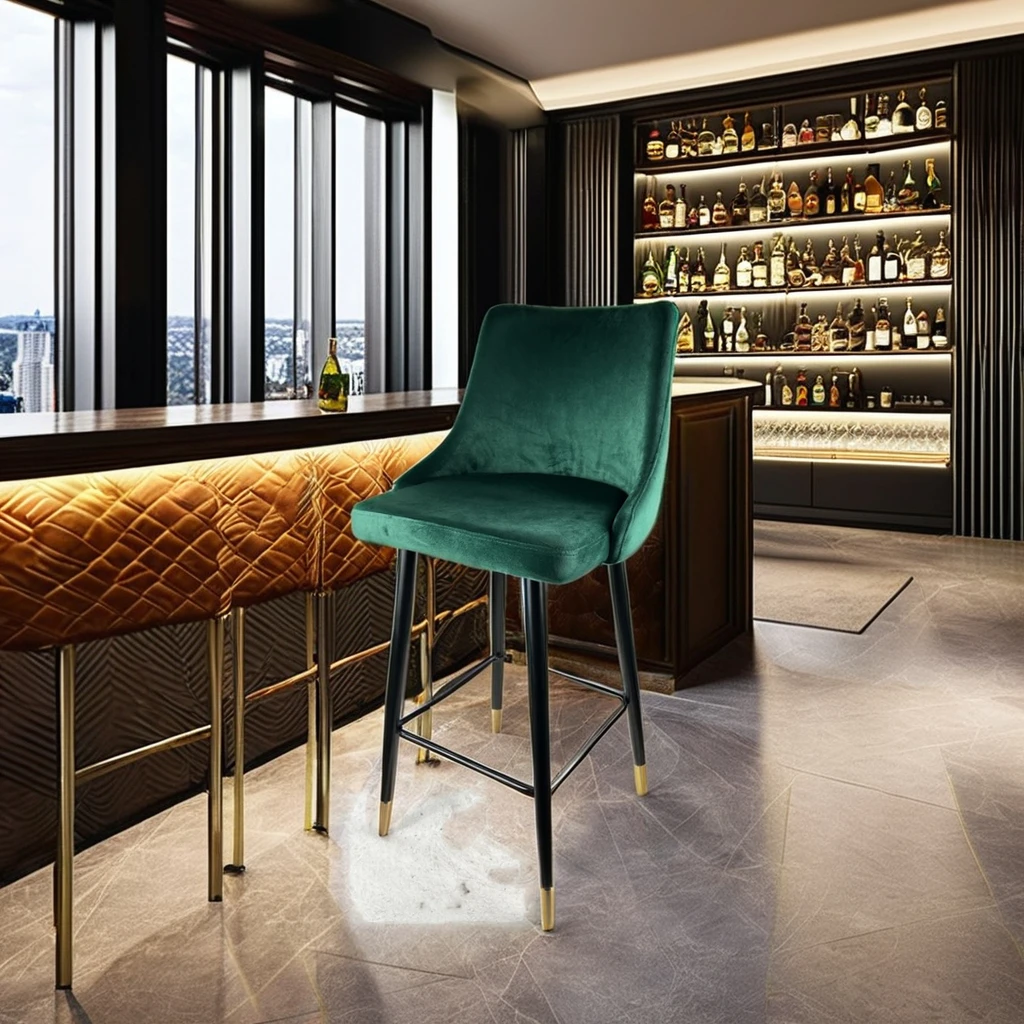 Hot Sale Bar Stool Velvet Cheap High Bar Counter Chair With Backrest Fabric Luxury Kitchen Bar Commercial Metal Counter Stool