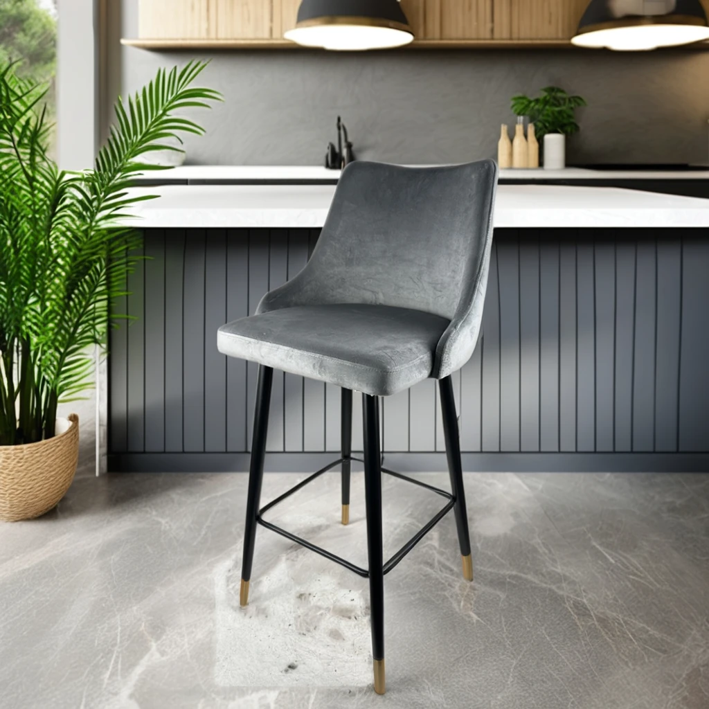 Simple Modern Bar High Chair Velvet Nordic Light Luxury Bar Chair High Stool Velours Household Backrest Front Desk Cashier Chair