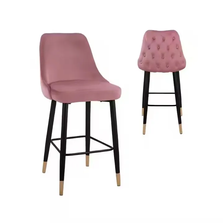 New Design Luxury Velvet High Bar Chair China Manufacturer Nordic Restaurant Hotel Cafe Backrest Counter Bar Stools