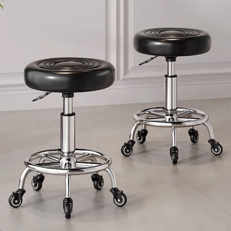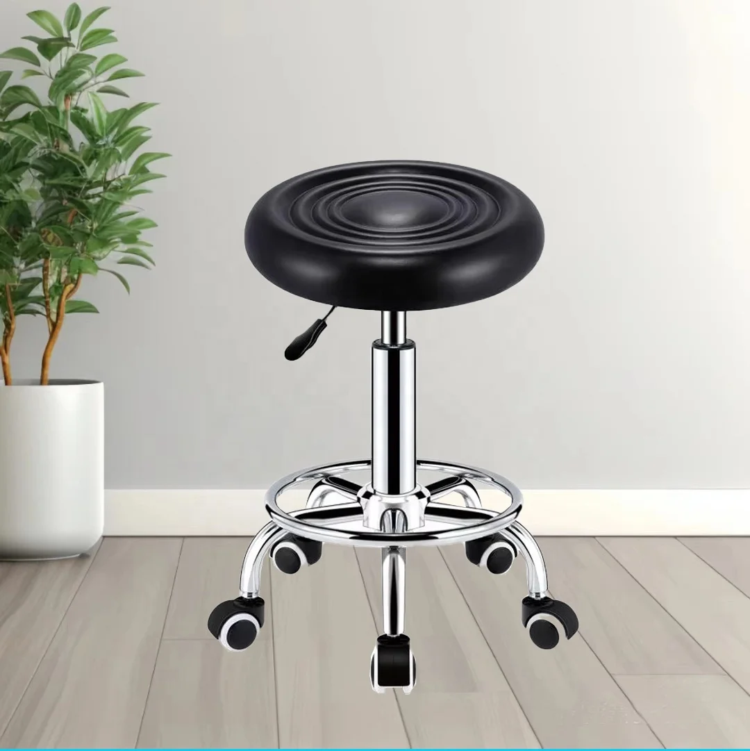 Rotating Lifting Round Salon Stool Metal Beauty Stool for Hairdressing and Barber Shops Pulley Feature for Dining Application