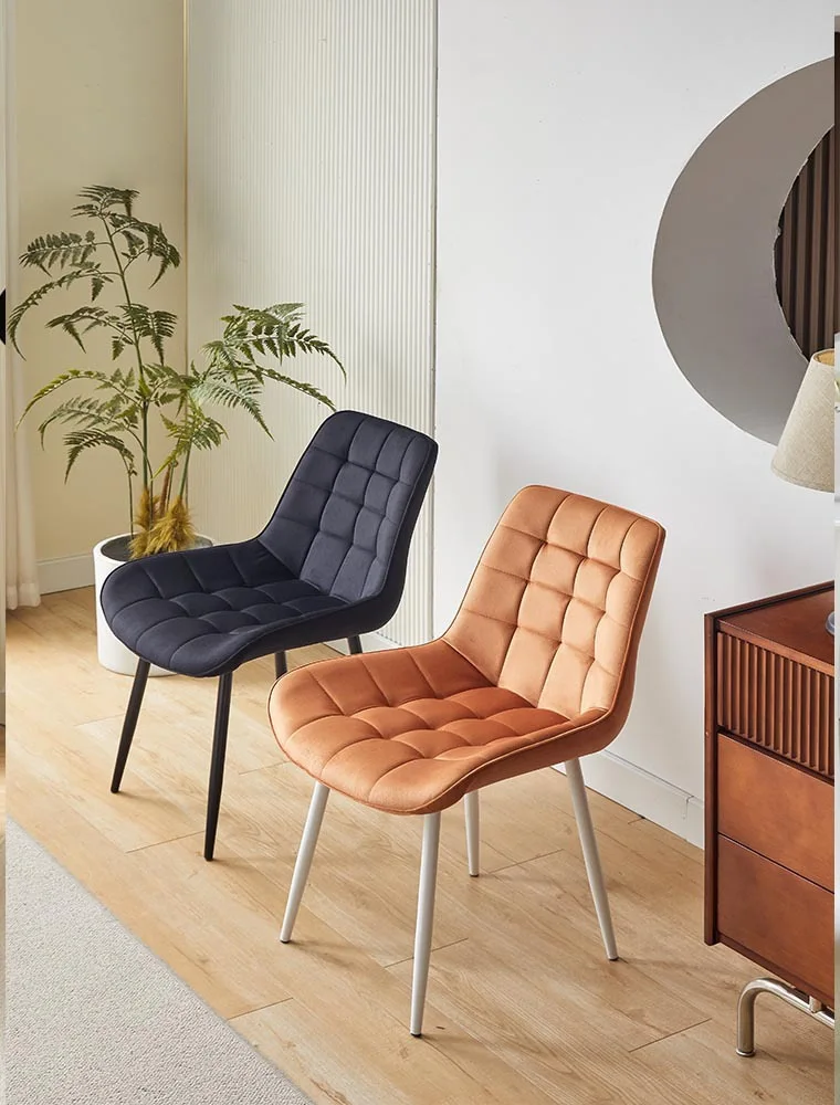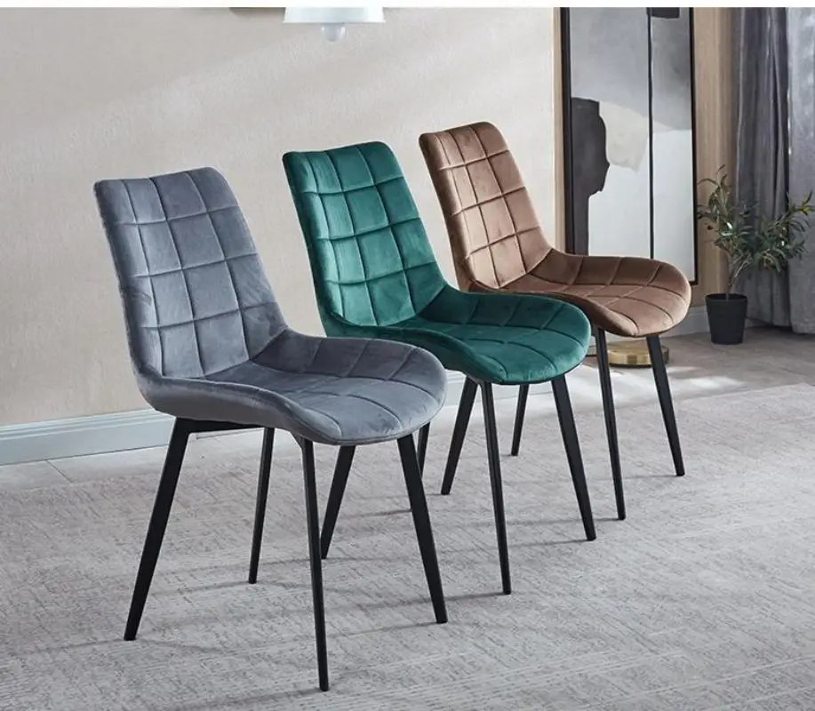 Upholstered Dining Chair with Metal Legs for Kitchen Room Coffe Shop Colorful Simple Style Velvet Chairs for Living Room
