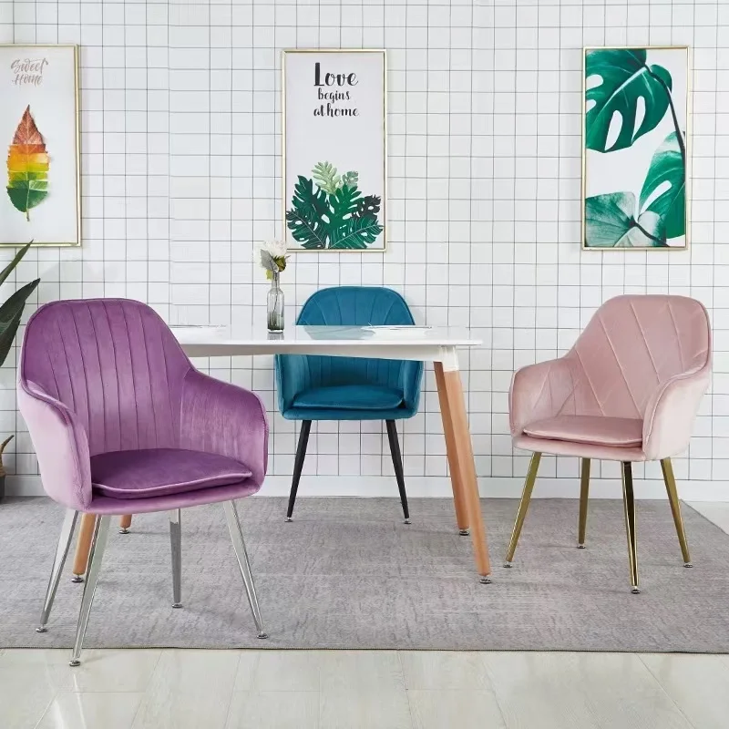 Low MOQ Dining Room Upholstered Chairs for Living Room Kitchen Backrest Nordic Style Leisure Modern Home Office Velvet Armchairs
