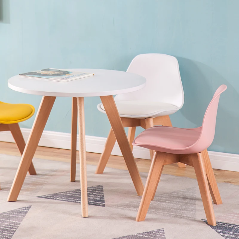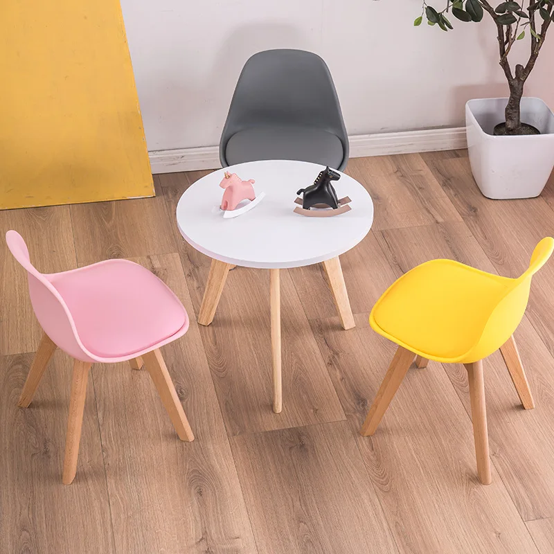 Wholesale Kids Furniture Modern Cheap PP Plastic Chair Colorful Small Plastic Soft PU Cushion Wood Chair Kids Party Chairs