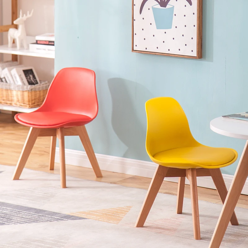 Nordic Colorful Polypropylene Tulip Kids Chair with Cushion Wood Kindergarten Table and Chair Children Plastic PP Dining Chair