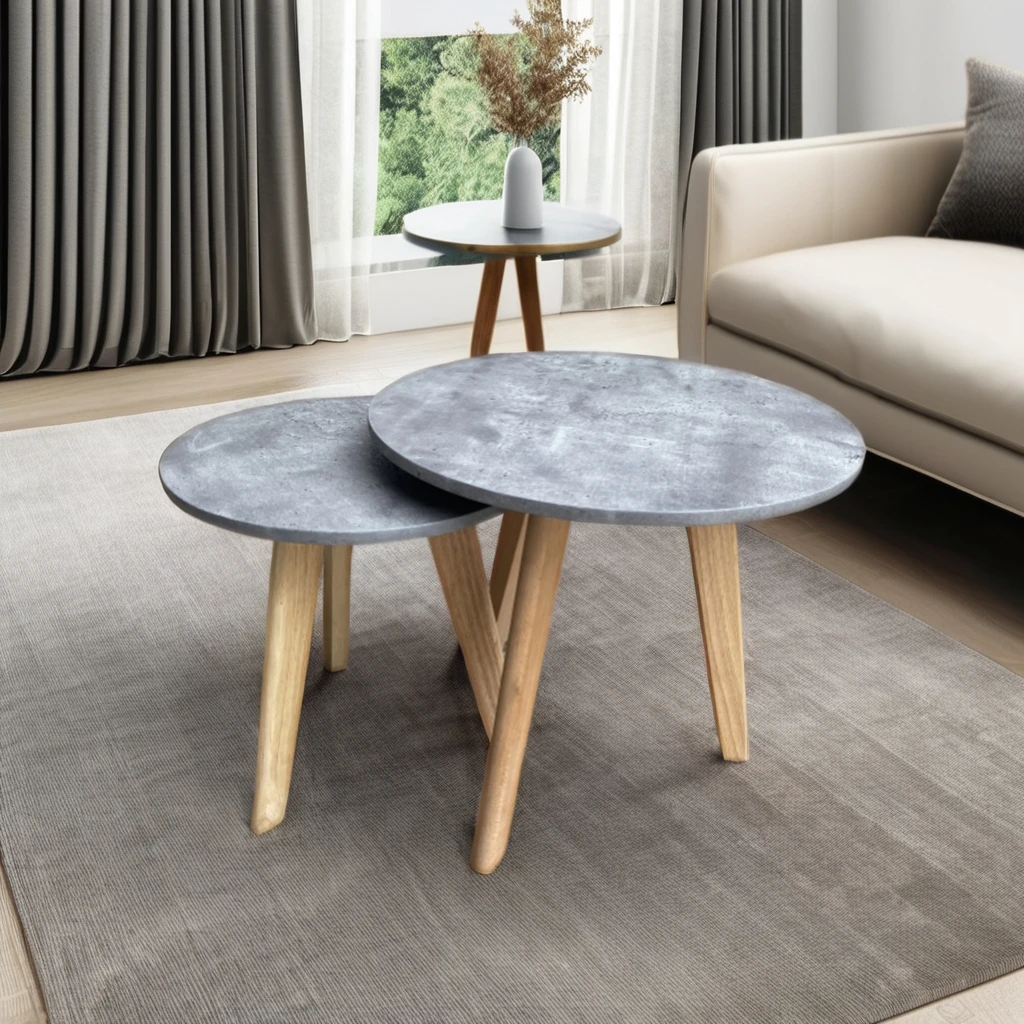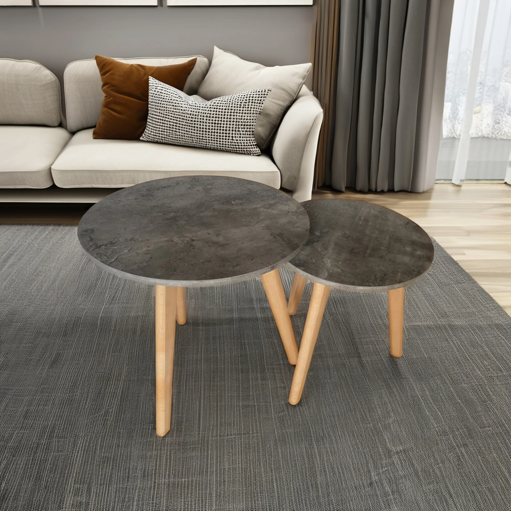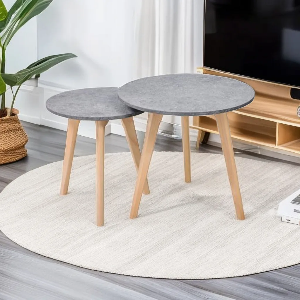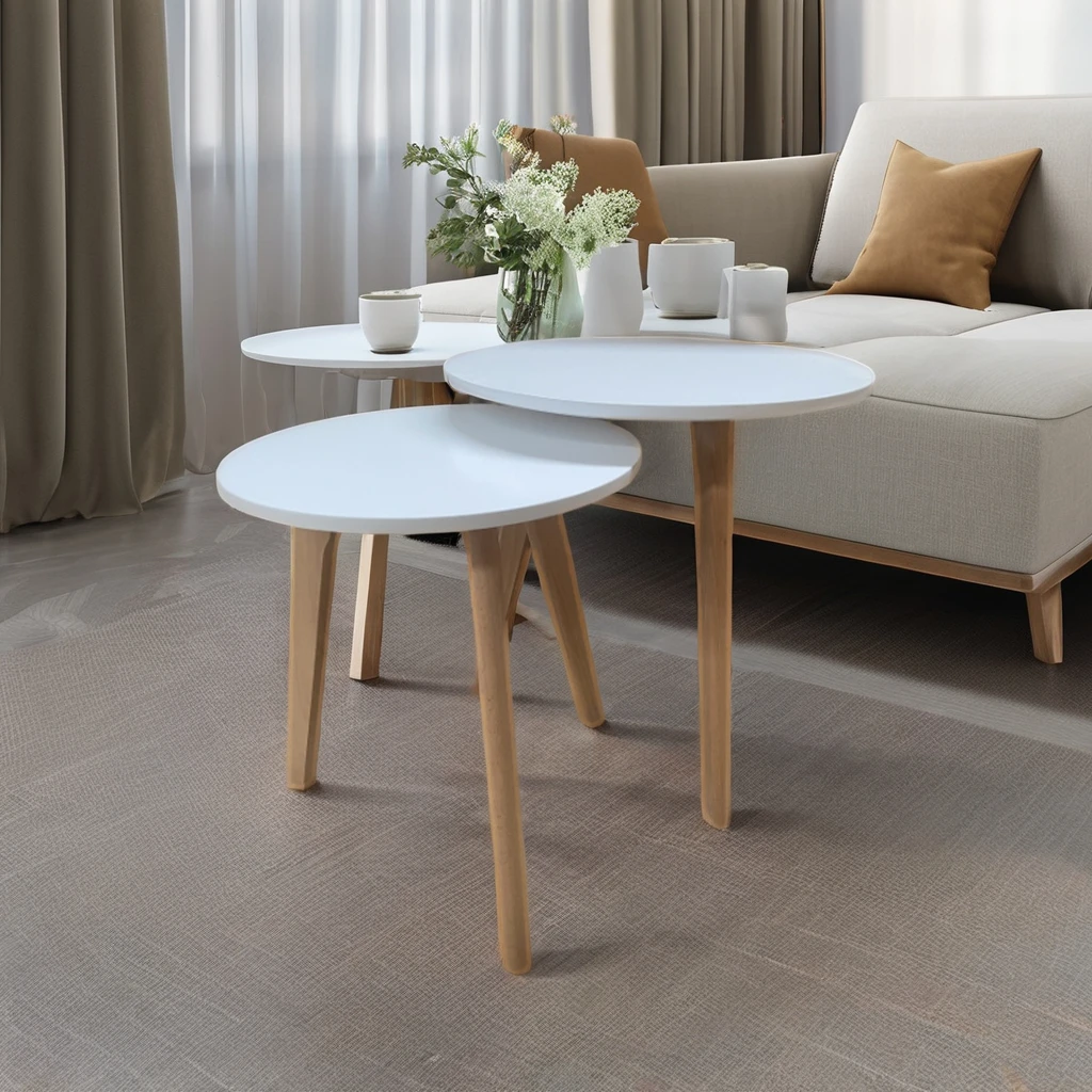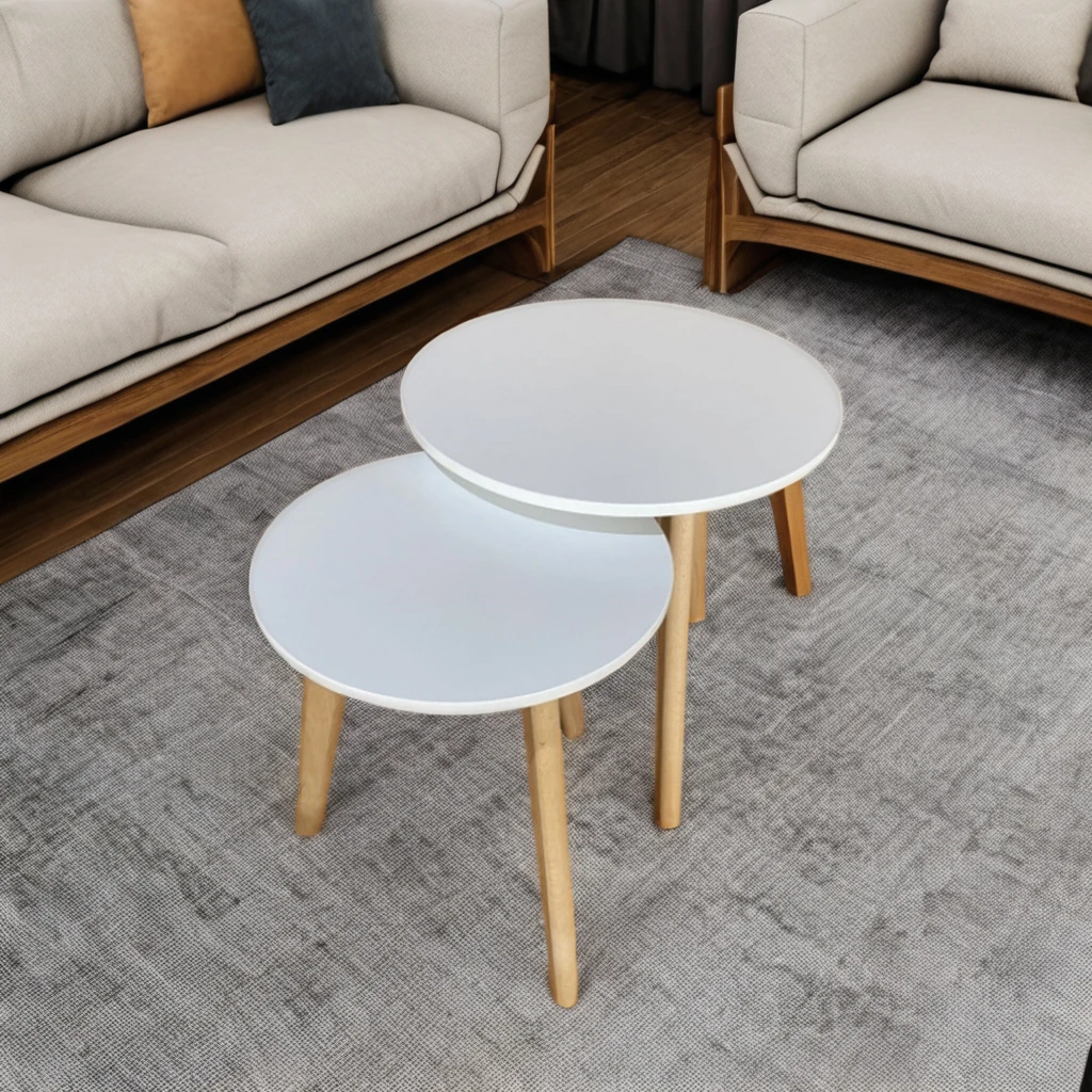 European Style Luxury Wooden Coffee Table Home Furniture 2 Size MDF Round Modern Oak Coffee Table For Living Room Side Table