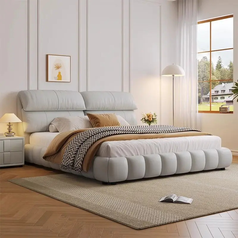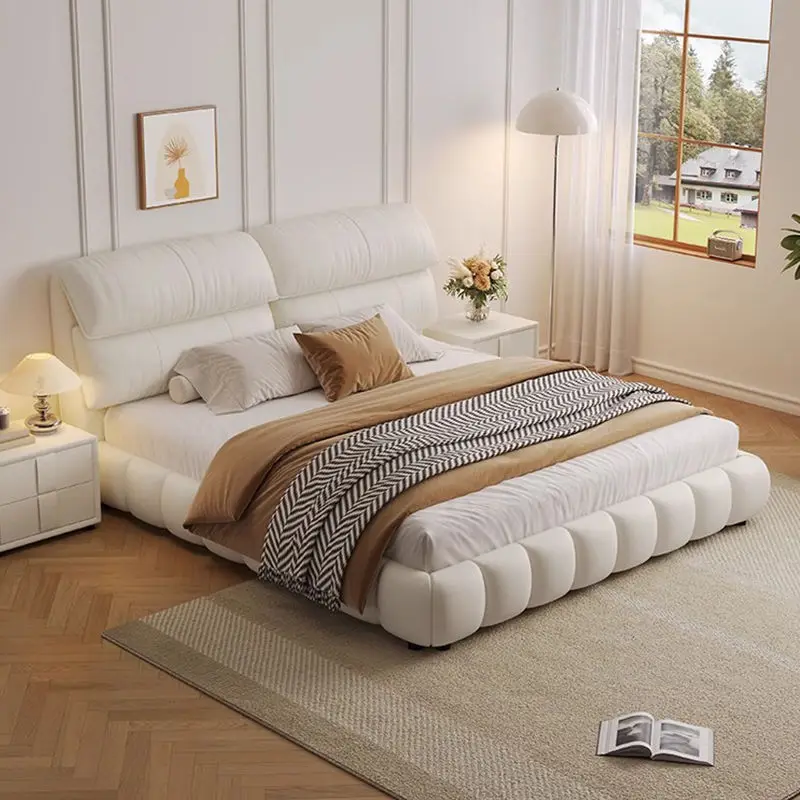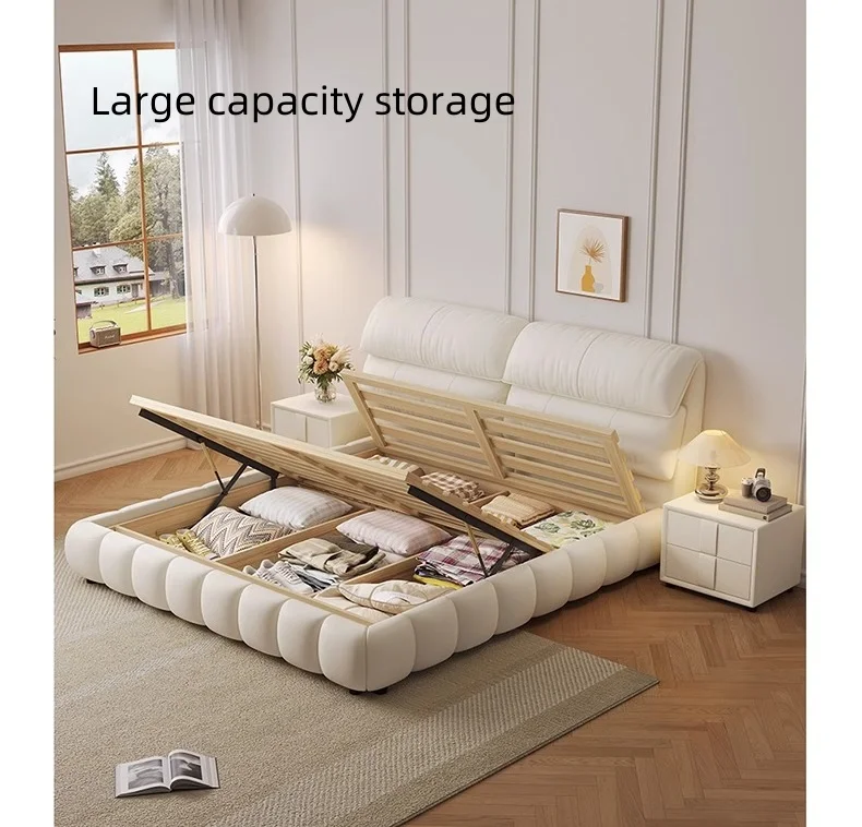 Italian Luxury Double Bed Solid Wood Frame King Size Bed Frame Storage Double Cloud Bed for Bedroom Furniture Set